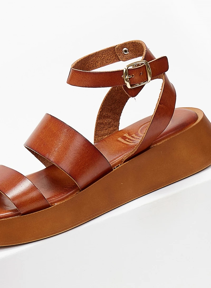 Σανδάλια δερμάτινα TFP με φάσες και ψηλή σόλα. Δένουν με μπαρέτα στο ύψος του αστραγάλου. Έχουν μαλακό δερμάτινο πάτο με ενίσχυση. Ελληνικής κατασκευής.