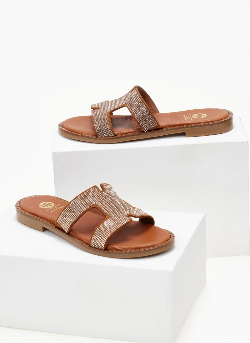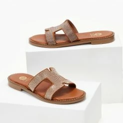Τοπ 10 😍 Best Pirce 🎁 Σανδάλια δερμάτινα TFP με μικρά Strass – Χαλκός 💯 🔔