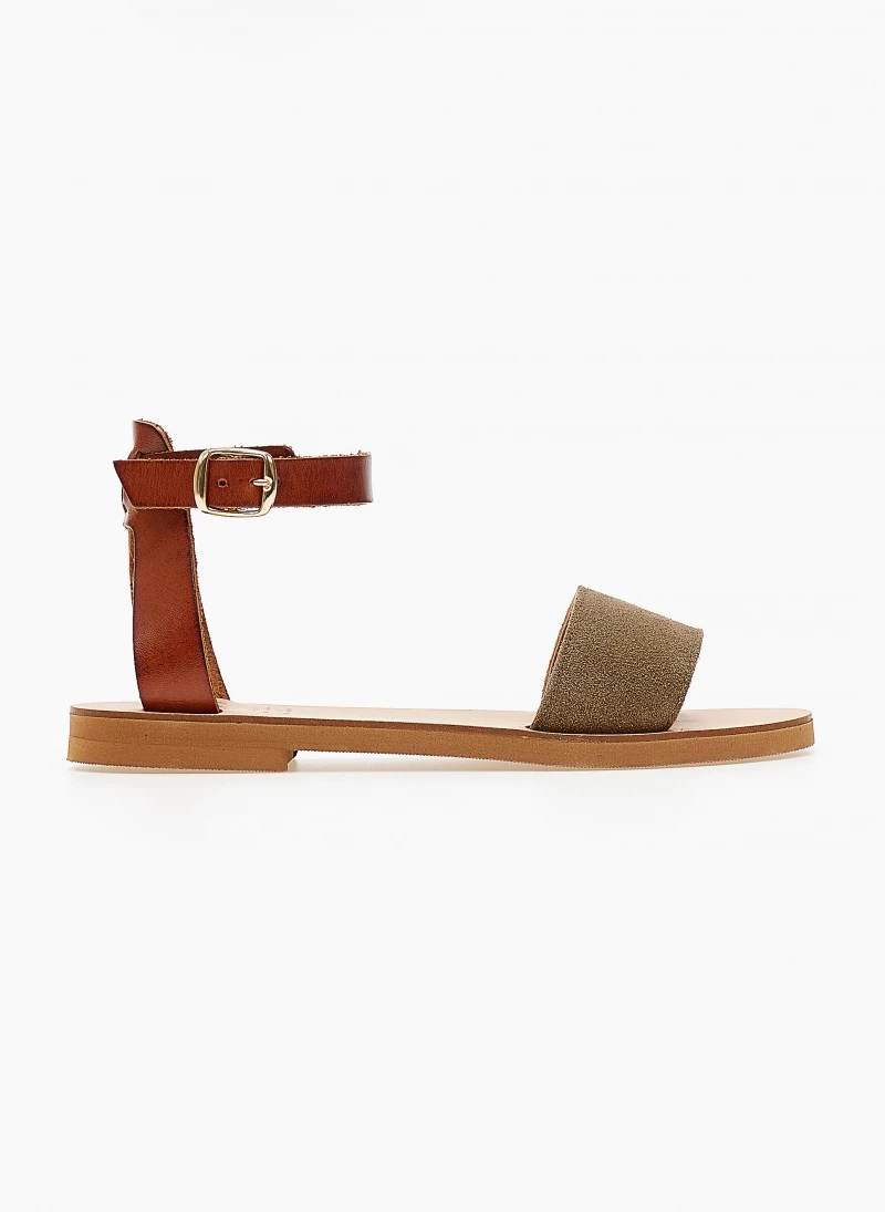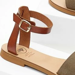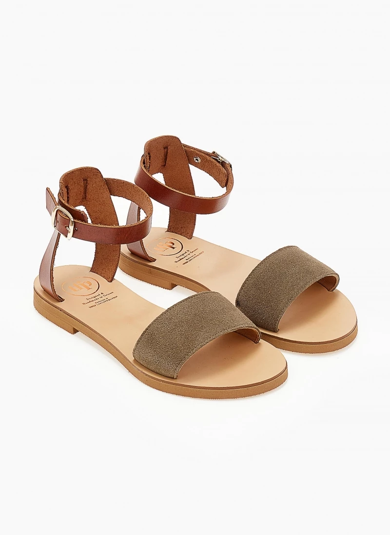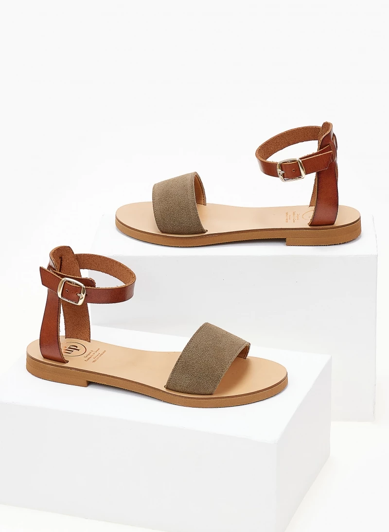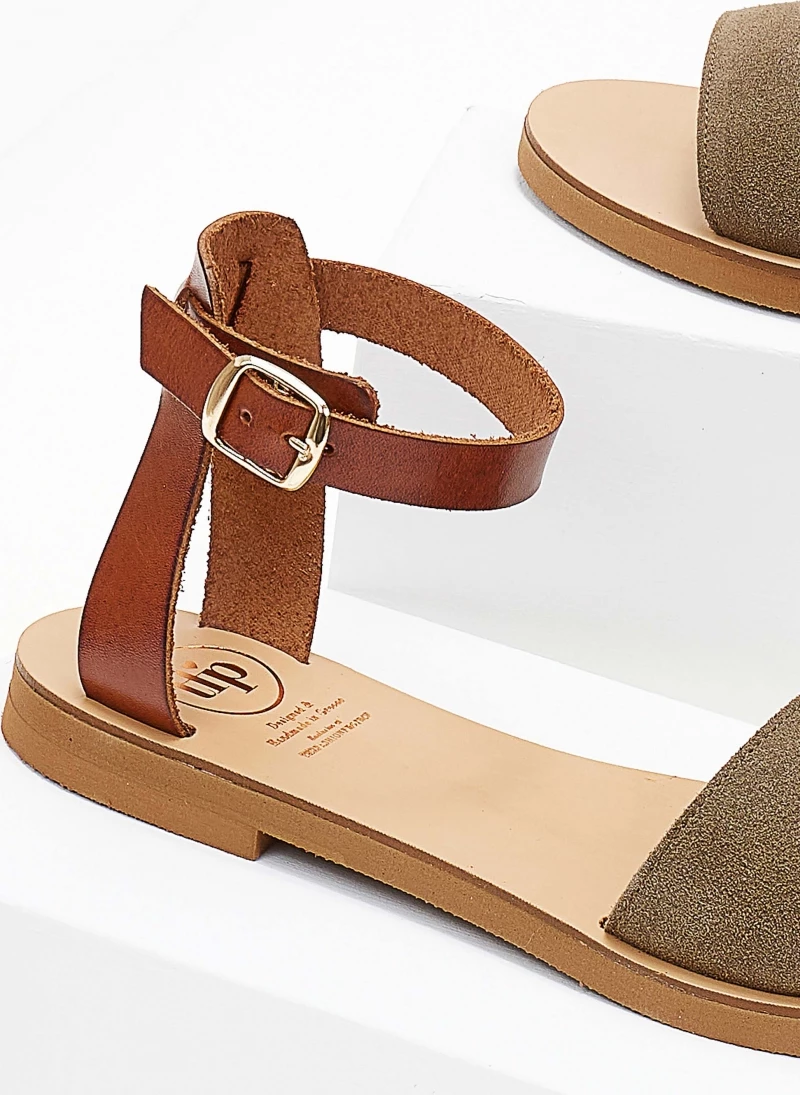 Σανδάλια δερμάτινα TFP. Nubuck δέρμα στη φάσα. Δένουν με μπαρέτα στο ύψος του αστραγάλου. Ελληνικής κατασκευής.