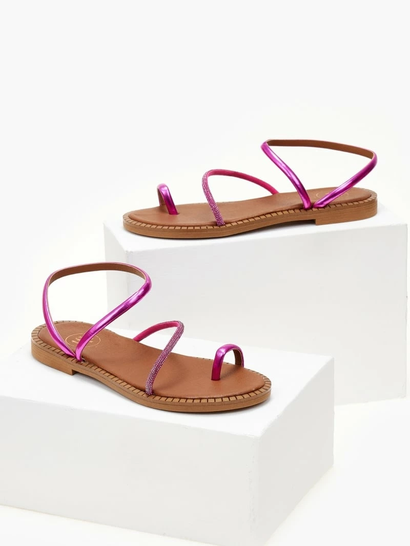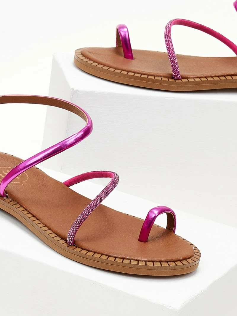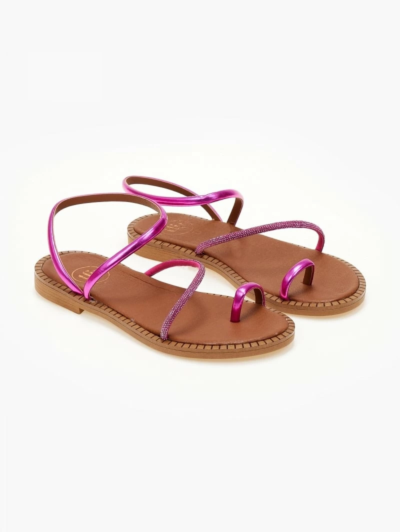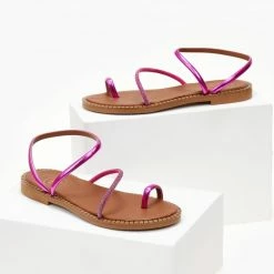 Best Pirce ⭐ Φτηνός 🎁 Σανδάλια δερμάτινα TFP με περαστό λουράκι – Φούξια 🎉 🔔