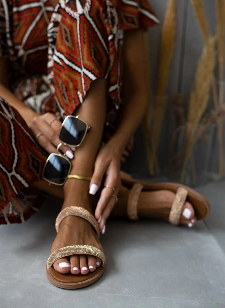 Εξοδος ❤️ Νέος 🛒 Σανδάλια δερμάτινα TFP με Strass φάσες – Χαλκός 💯 ✨