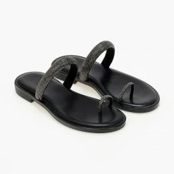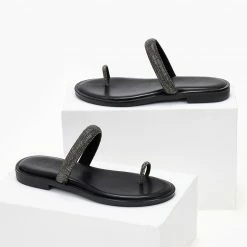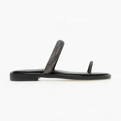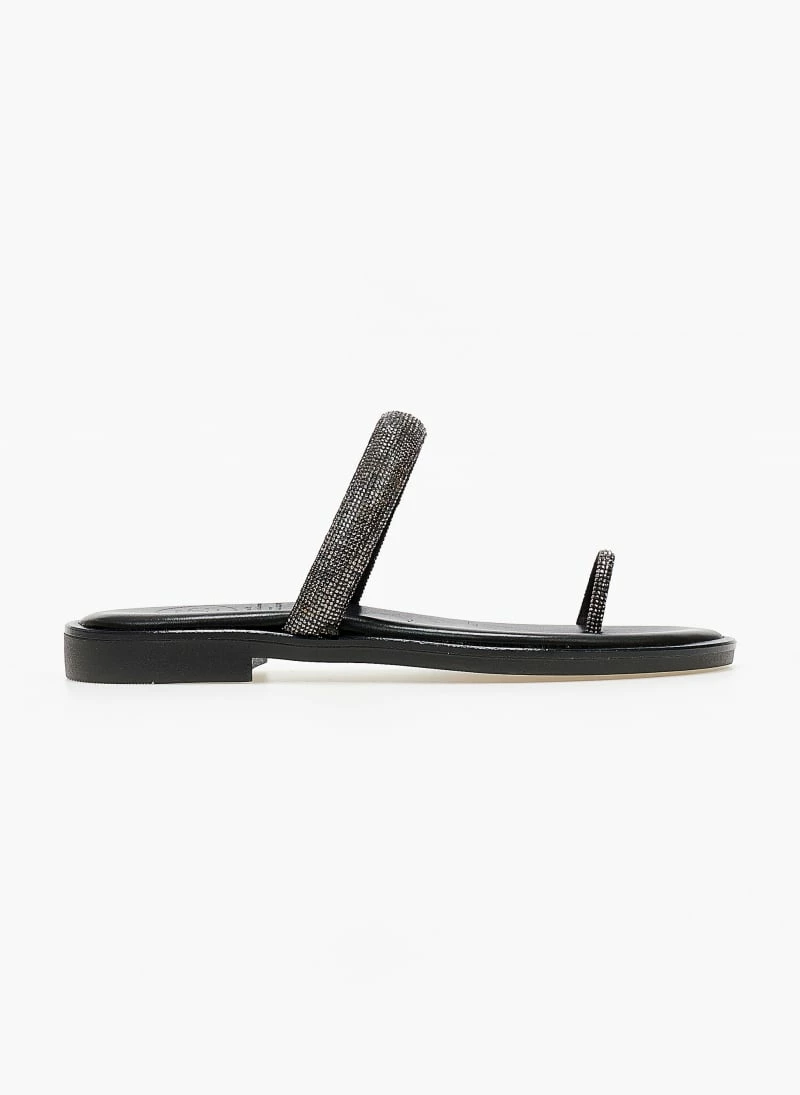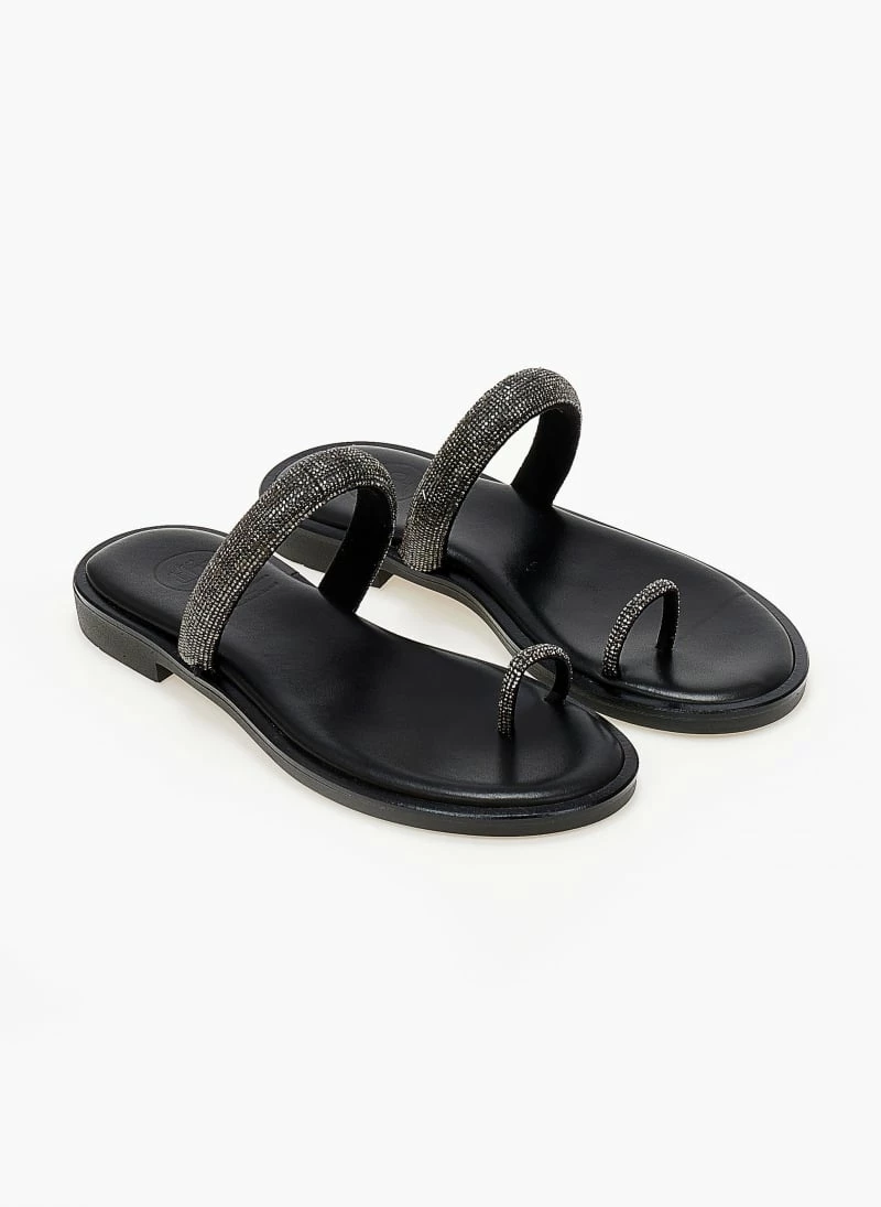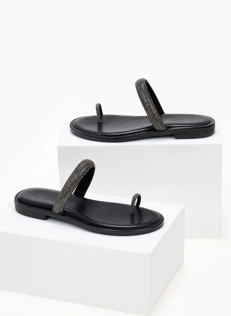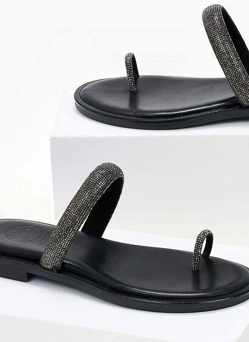 Ολοκαίνουργιο ❤️ Best Pirce 🤩 Σανδάλια δερμάτινα TFP με Strass λουράκι – Μαύρο 🔥 😉