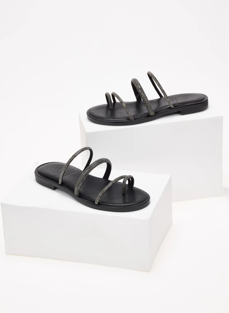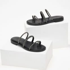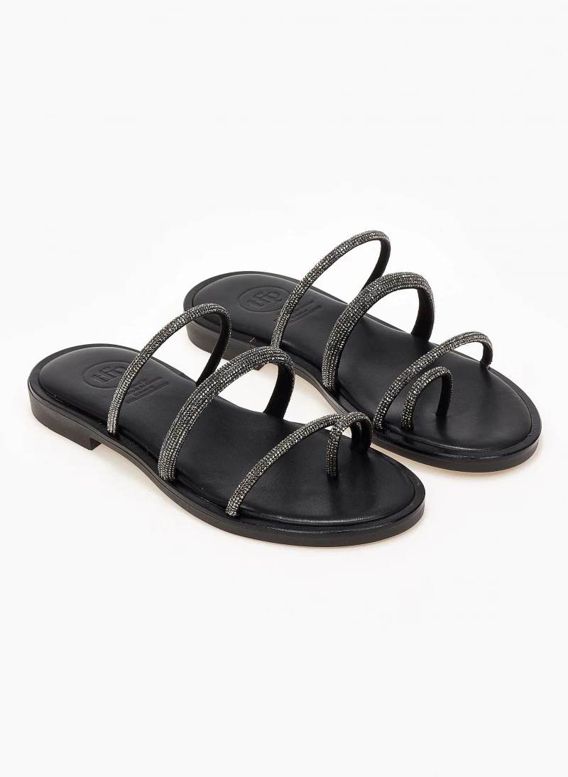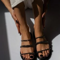 Αγορά 🔥 Flash Sale 💯 Σανδάλια δερμάτινα TFP με Strass λουράκια – Μαύρο 🤩 🔥
