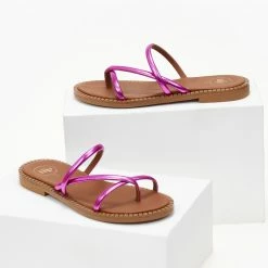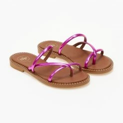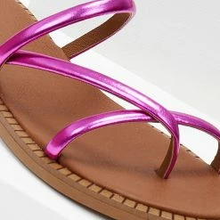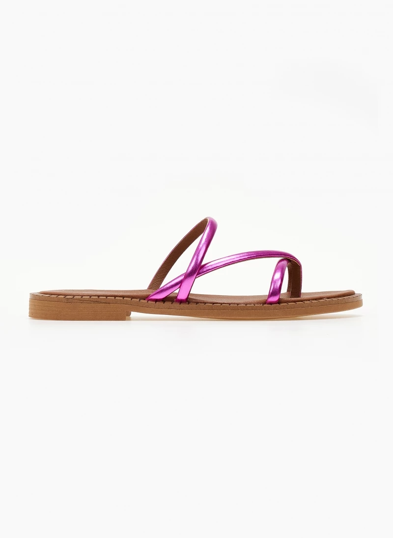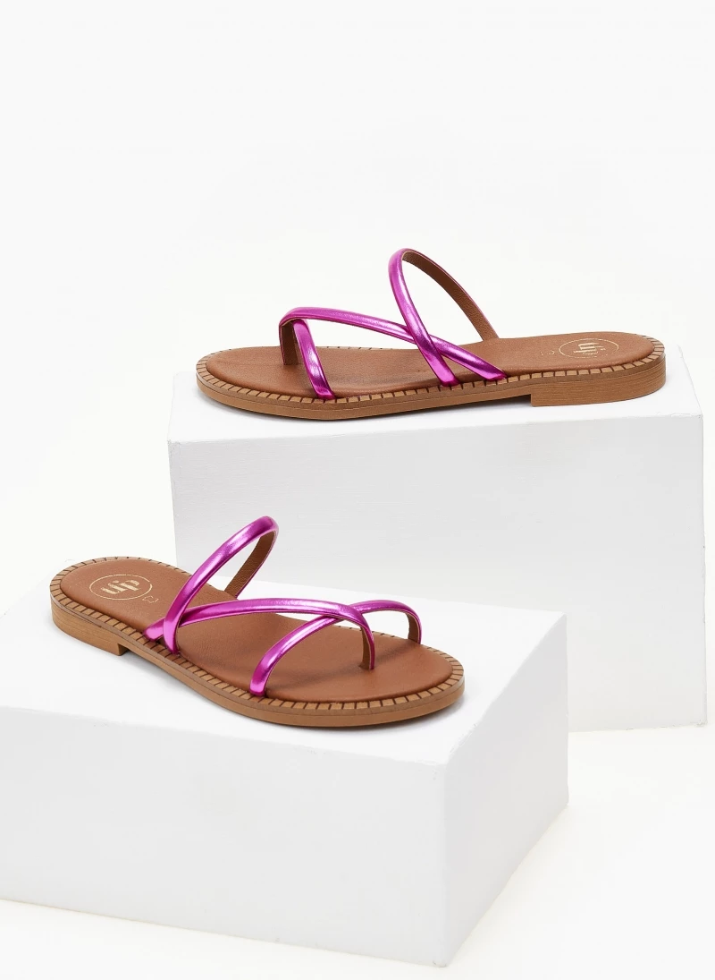 Εξοδος 🔥 Best Pirce 🤩 Σανδάλια δερμάτινα TFP με στρογγυλά λουράκια – Φούξια 😍 🔔