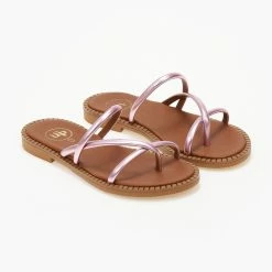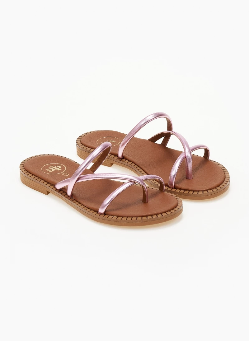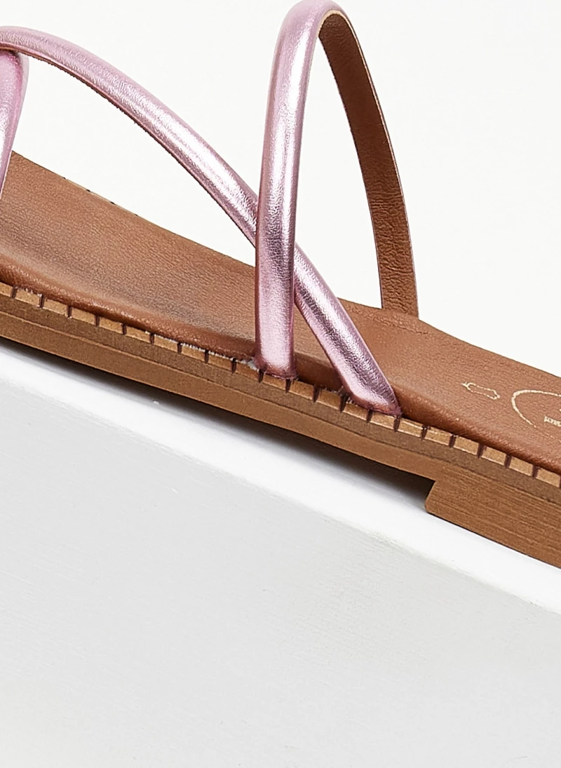 Σανδάλια δερμάτινα TFP με στρογγυλεμένα λουράκια σε μεταλλικά χρώματα. Ανάγλυφο σχέδιο περιμετρικά της σόλας. Δερμάτινος πάτος με ενίσχυση. Ελληνικής κατασκευής.
