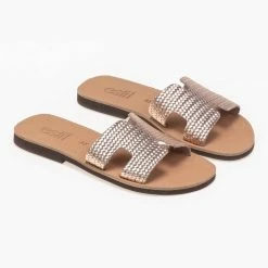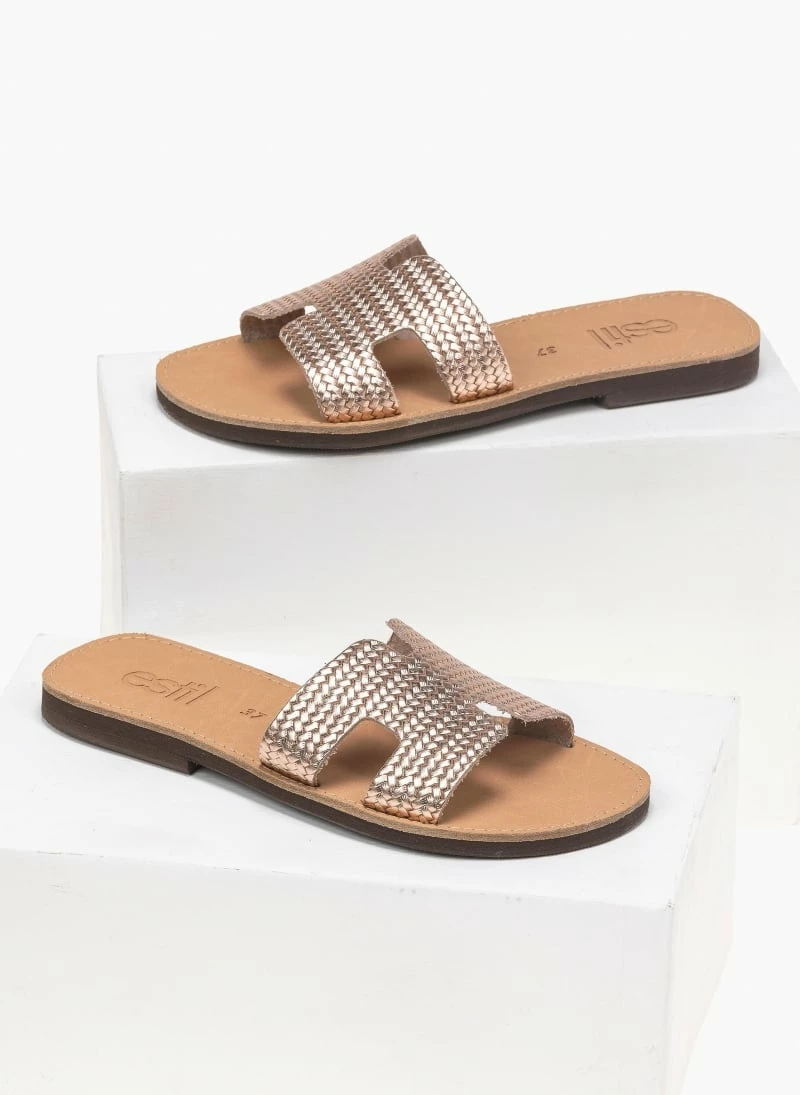 Πολύ καλή προσφορά 🛒 Αγορά 🥰 Σανδάλια Estil δερμάτινα με ανάγλυφο σχέδιο – Χαλκός ⌛ ✨