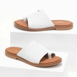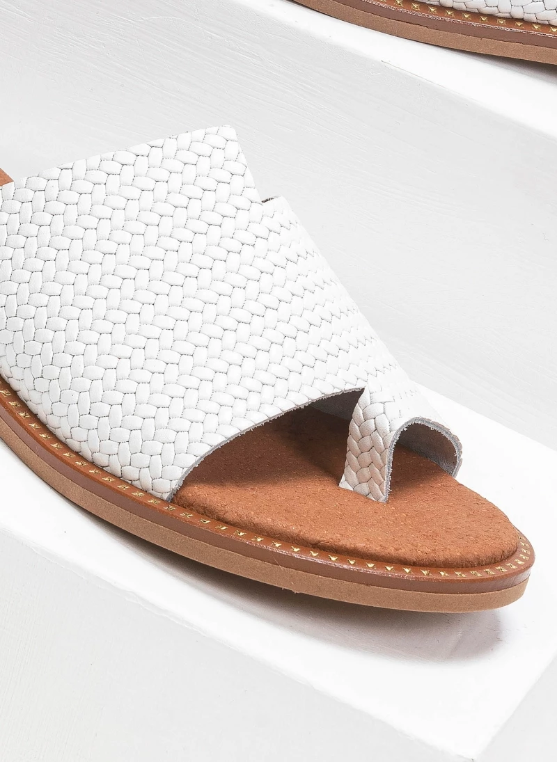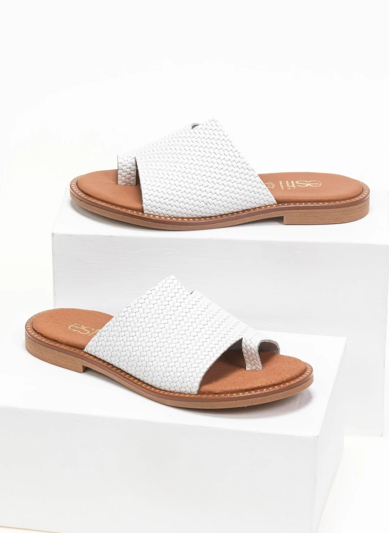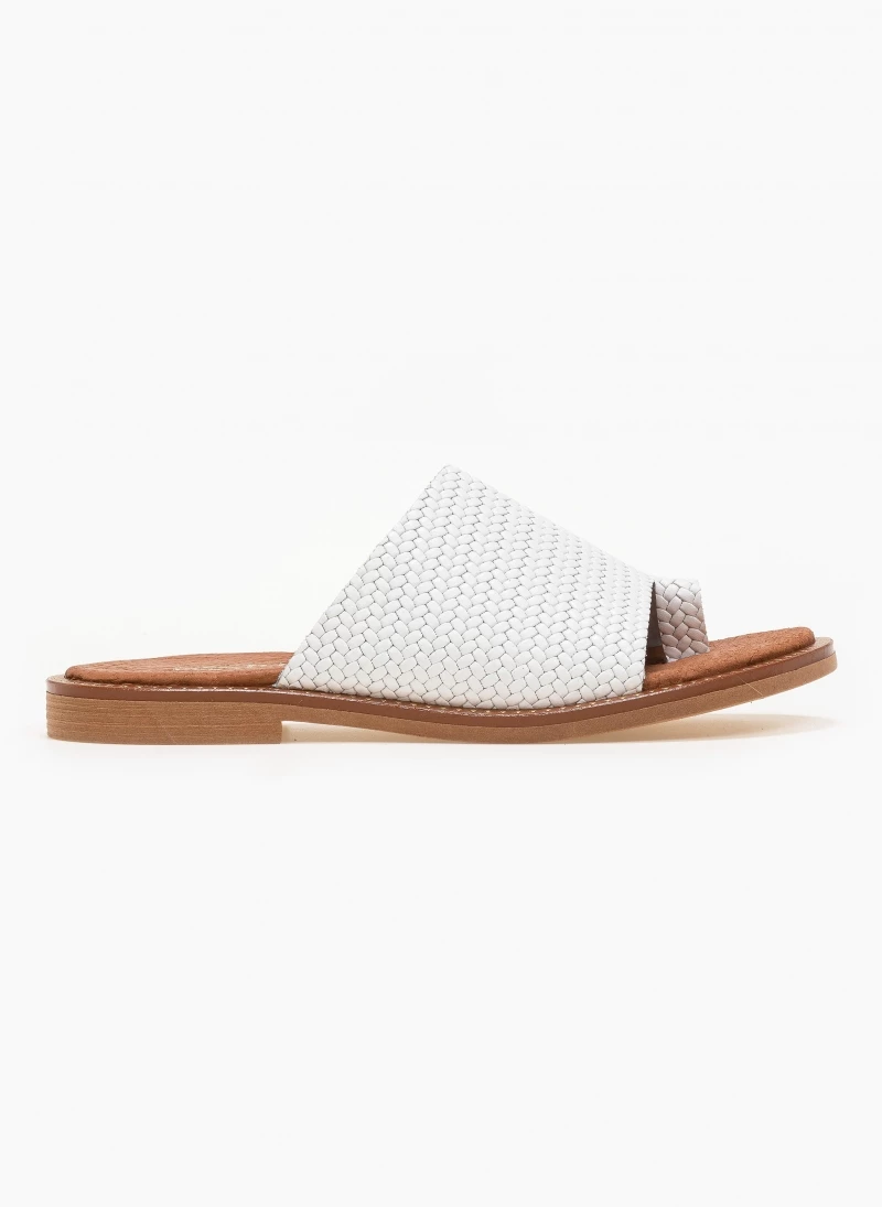 Συμφωνίες 🛒 Προώθηση 🎉 Σανδάλια Estil δερμάτινα με ανάγλυφο σχέδιο ψάθα – Λευκό ⭐ ✨