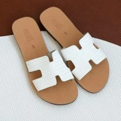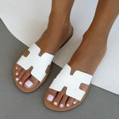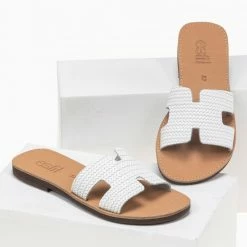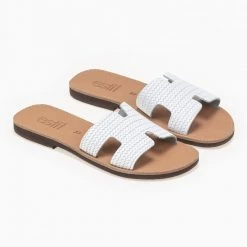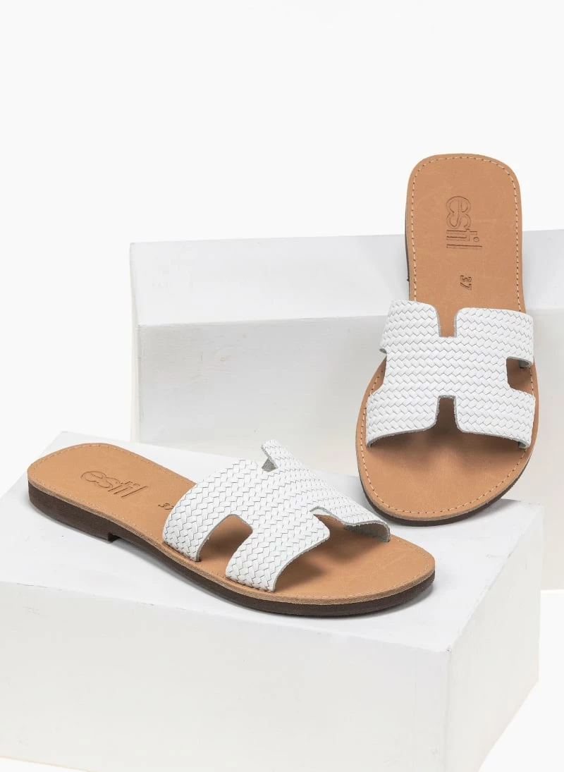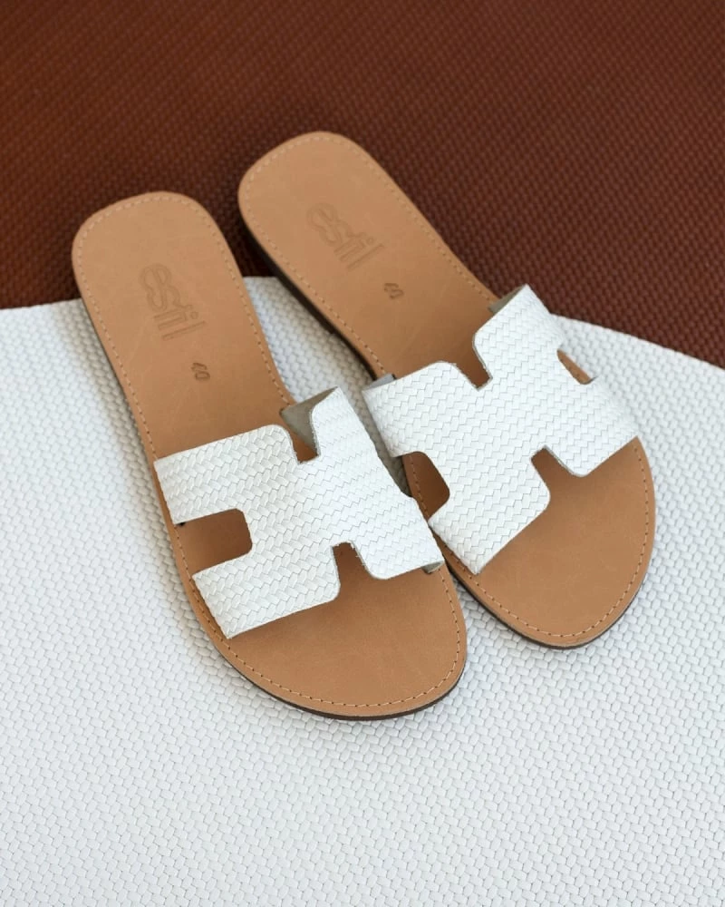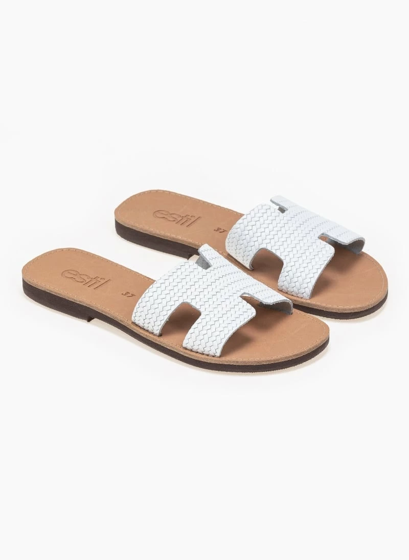 Η καλύτερη συμφωνία 😍 Εκπτωση ✨ Σανδάλια Estil δερμάτινα με ανάγλυφο σχέδιο – Λευκό 👏 🌟