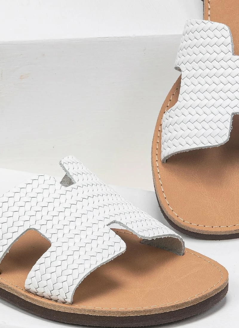 ΧΟΝΔΡΙΚΟ ΕΜΠΟΡΙΟ 🔔 Ολοκαίνουργιο 🥰 Σανδάλια Estil δερμάτινα με φάσα και Pattern ψάθα – Λευκό ⭐ 🤩