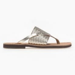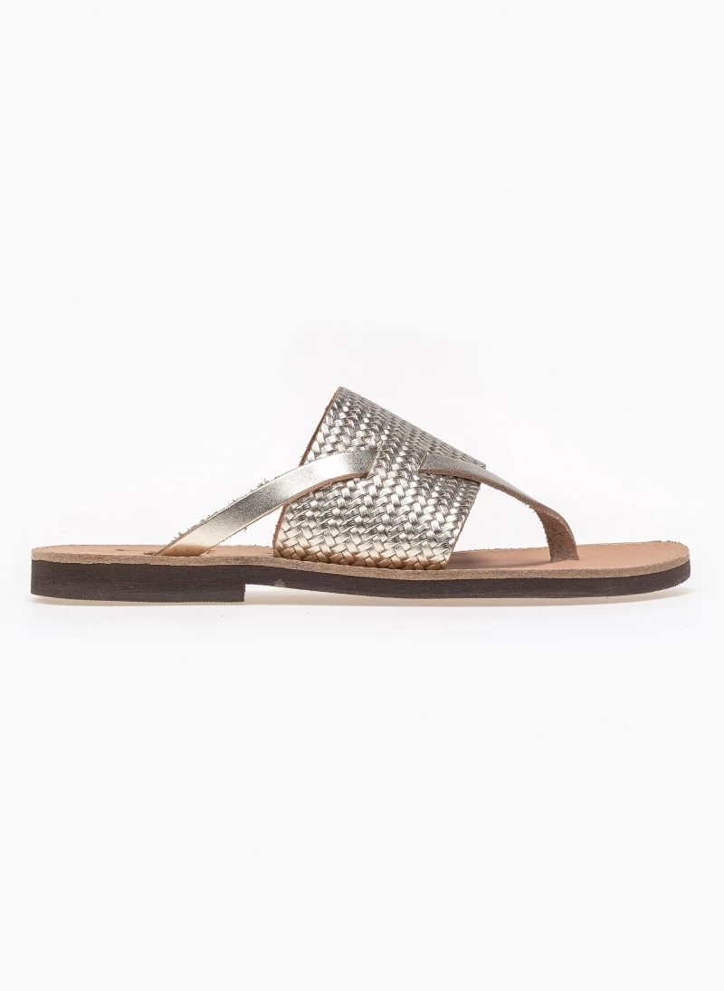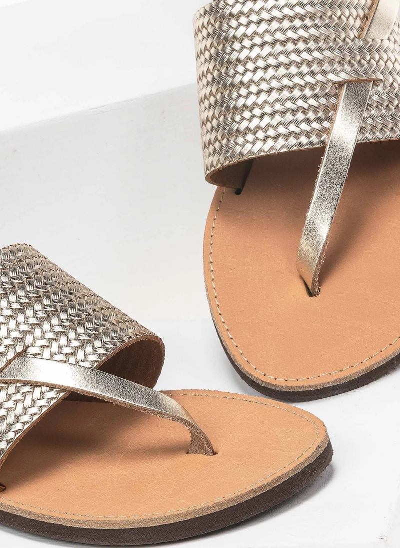 Η καλύτερη συμφωνία ⭐ Η καλύτερη συμφωνία 👏 Σανδάλια Estil δερμάτινα με ανάγλυφο σχέδιο ψάθα – Χρυσό 🧨 🎁