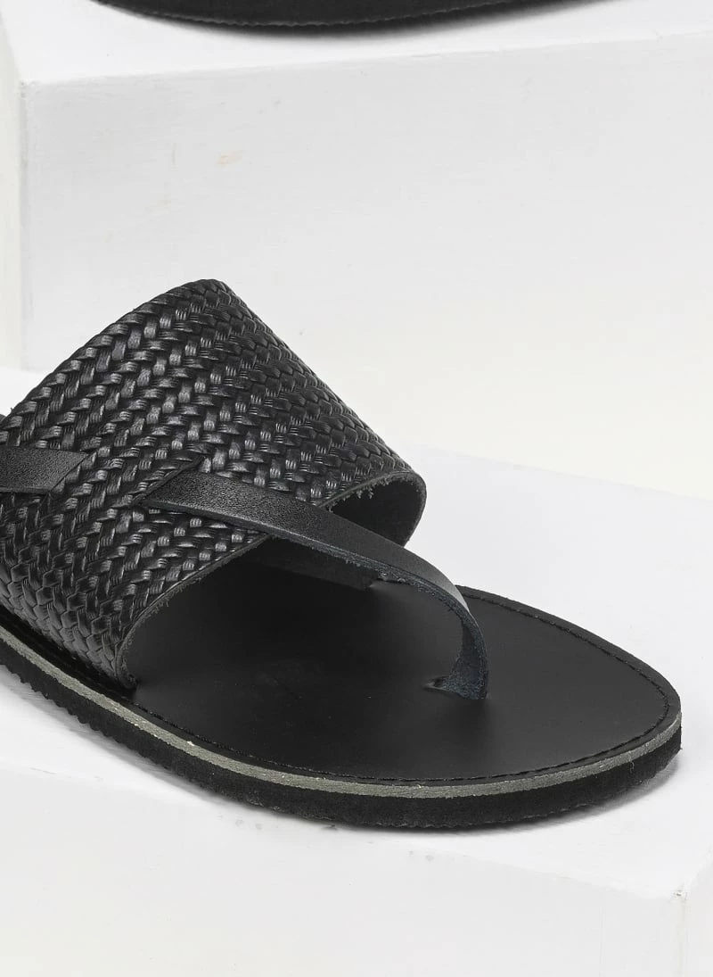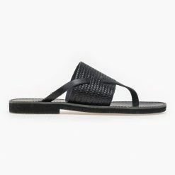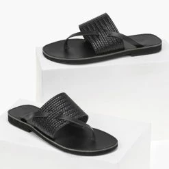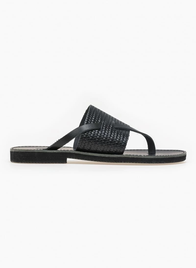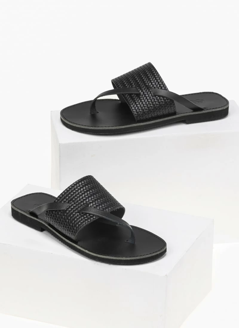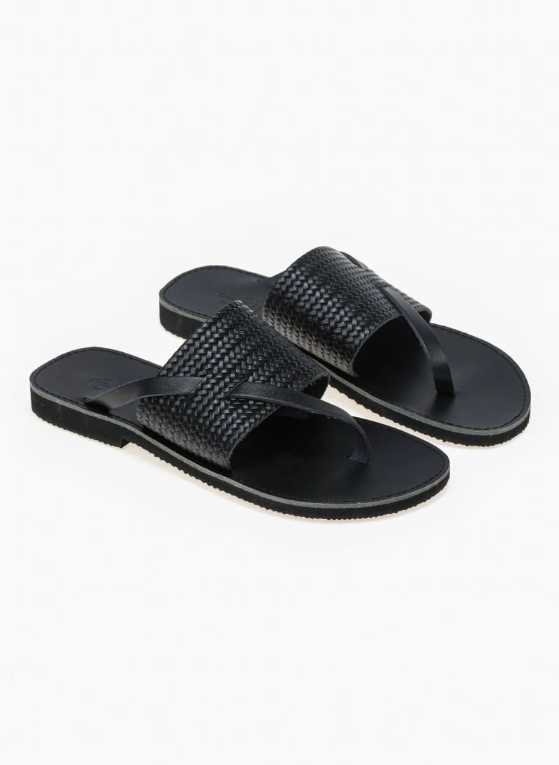 Ολοκαίνουργιο 🎉 Πολύ καλή προσφορά ⭐ Σανδάλια Estil δερμάτινα με ανάγλυφο σχέδιο ψάθα – Μαύρο 🌟 🎉