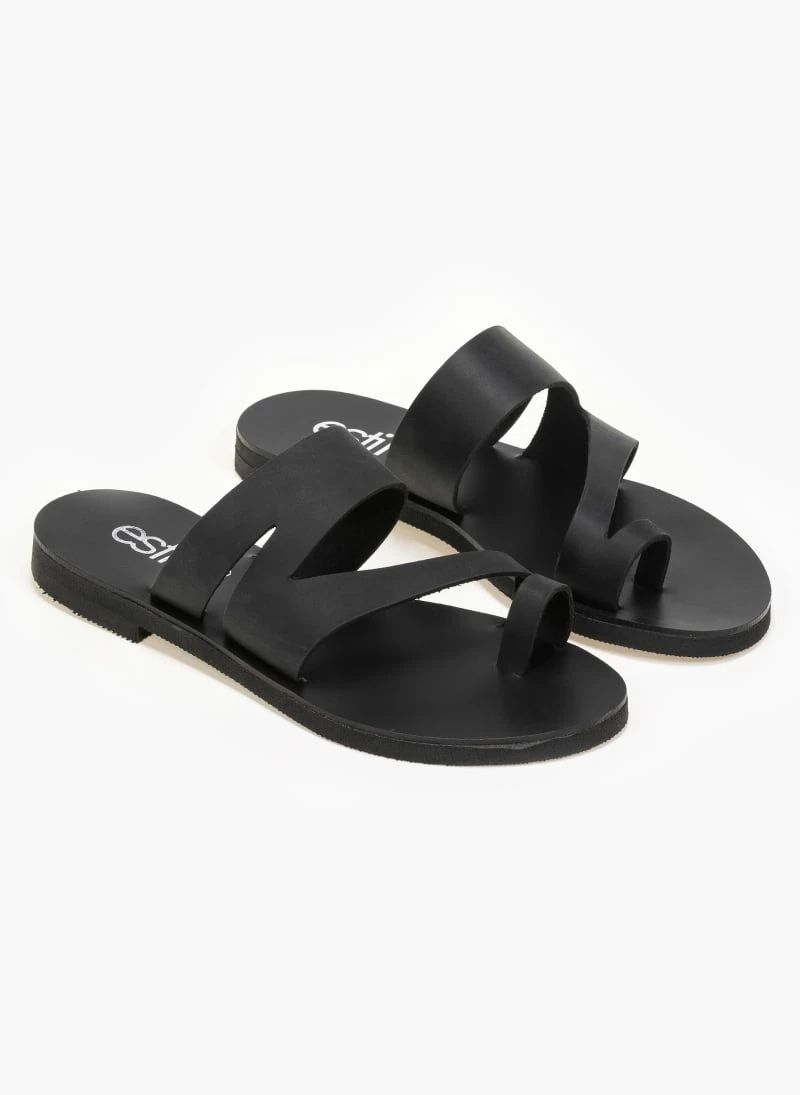 Προϋπολογισμός ❤️ Κουπόνι 💯 Σανδάλια Estil δερμάτινα με άνοιγμα στο πλάι – Μαύρο ✔️ 🎉