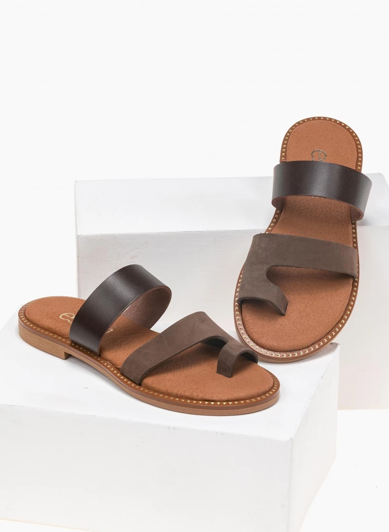 Καλύτερη πώληση ⭐ Εκπτωση 🥰 Σανδάλια Estil δερμάτινα με δυο φάσες – Καφέ 🛒 🤩