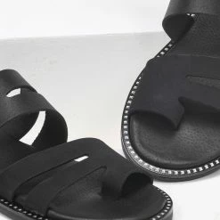 Προώθηση ❤️ Εκπτωση 👍 Σανδάλια Estil δερμάτινα με δύο φάσες και ανοίγματα – Μαύρο ✨ 🌟
