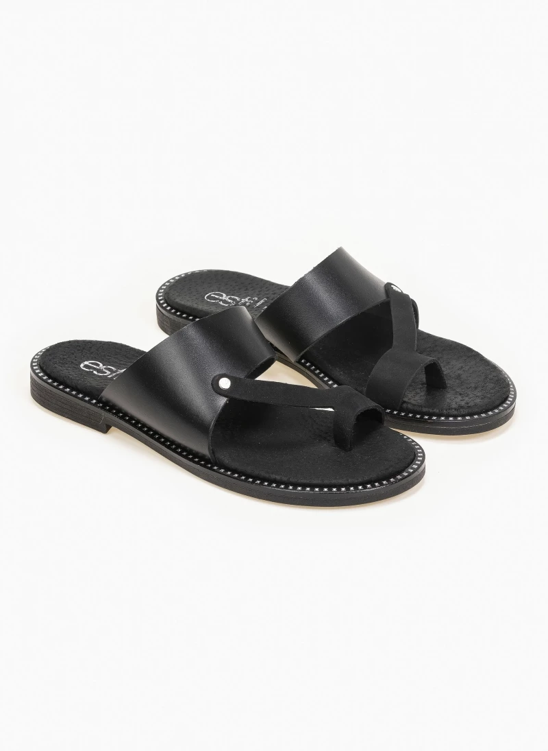 Συμφωνίες 🔥 Φτηνός 👍 Σανδάλια Estil δερμάτινα με φάσα και δάκτυλο – Μαύρο 🔔 🔥