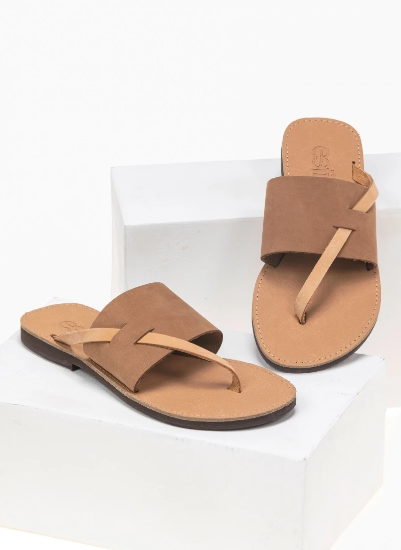 Estil δερμάτινα σανδάλια με φαρδιά φάσα και λεπτό λουράκι. Ελληνικής κατασκευής, χειροποίητα.