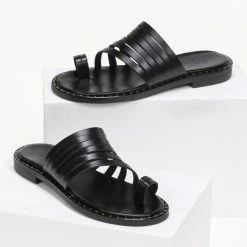 Κουπόνι 🎉 Καλύτερες κριτικές για 🤩 Σανδάλια Estil δερμάτινα με λεπτά λουράκια – Μαύρο 👏 🛒
