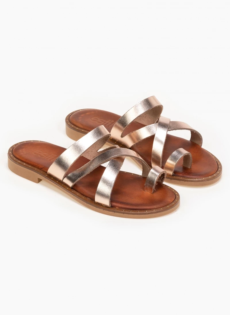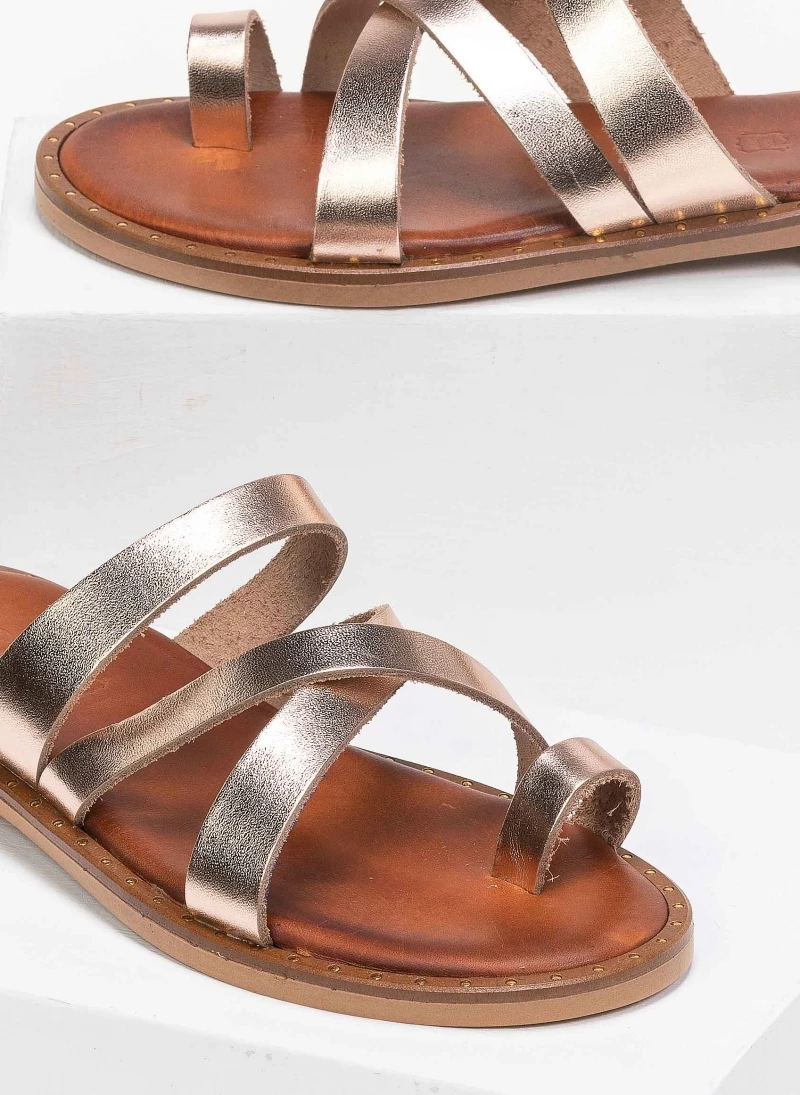 Προϋπολογισμός 🎁 Εξοδος ✨ Σανδάλια Estil δερμάτινα με λουράκια χιαστί – Χαλκός 💯 😀
