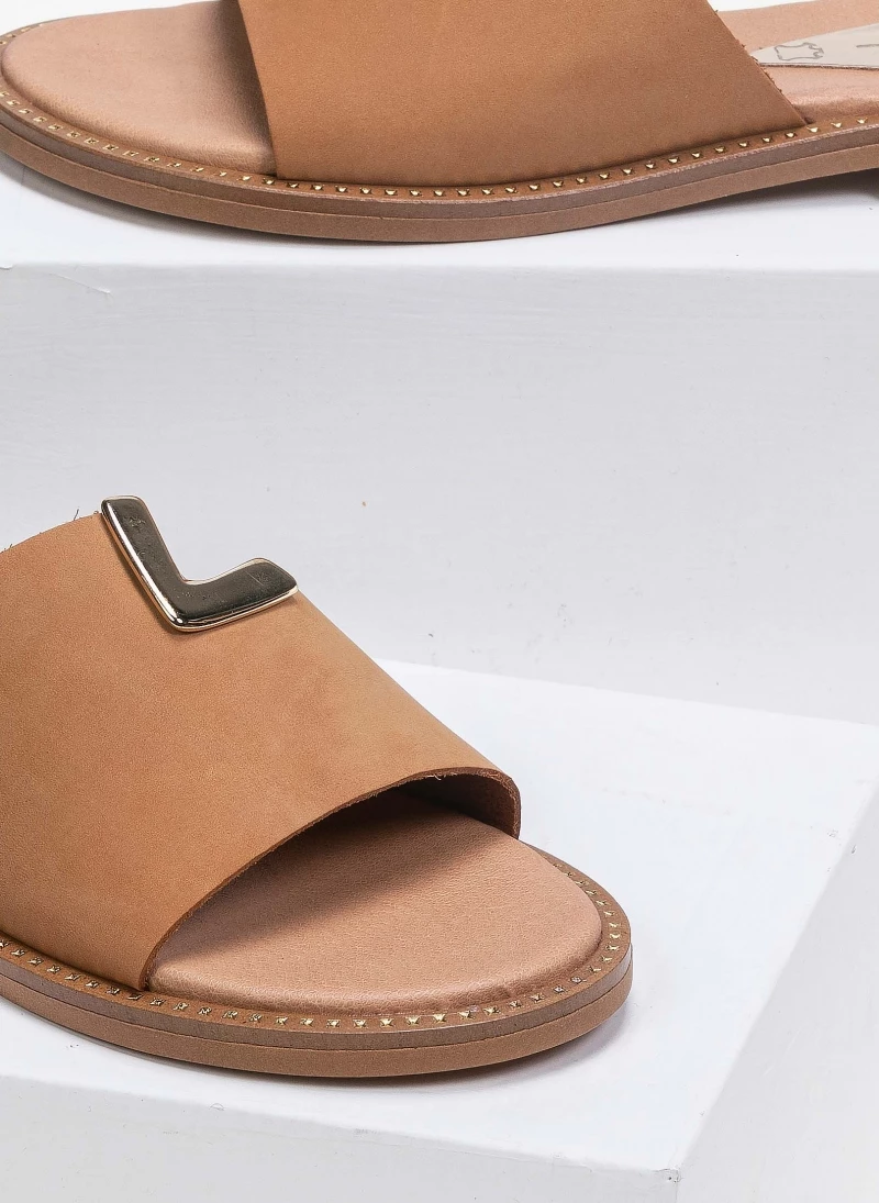Συμφωνίες ✨ ΧΟΝΔΡΙΚΟ ΕΜΠΟΡΙΟ 🎁 Σανδάλια Estil δερμάτινα με μέταλλο – Κάμελ 🎉 👏