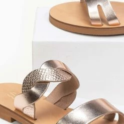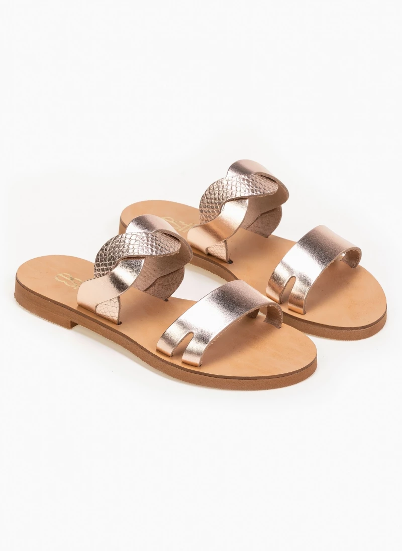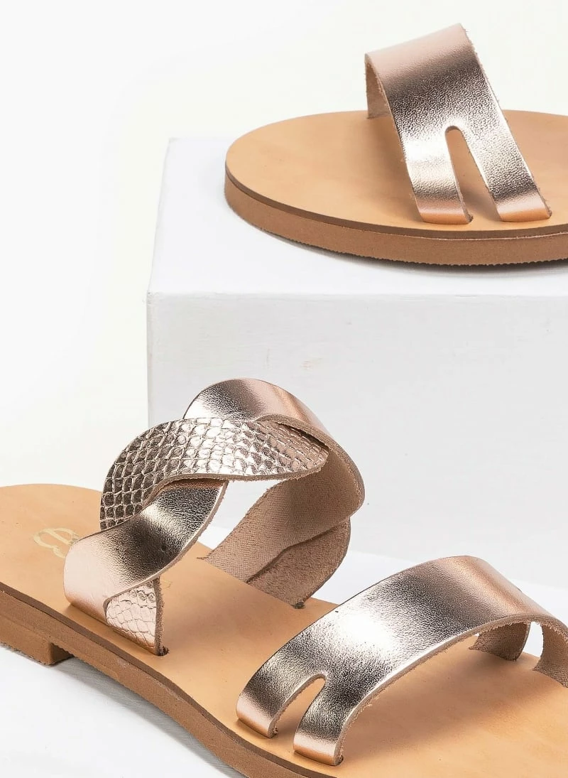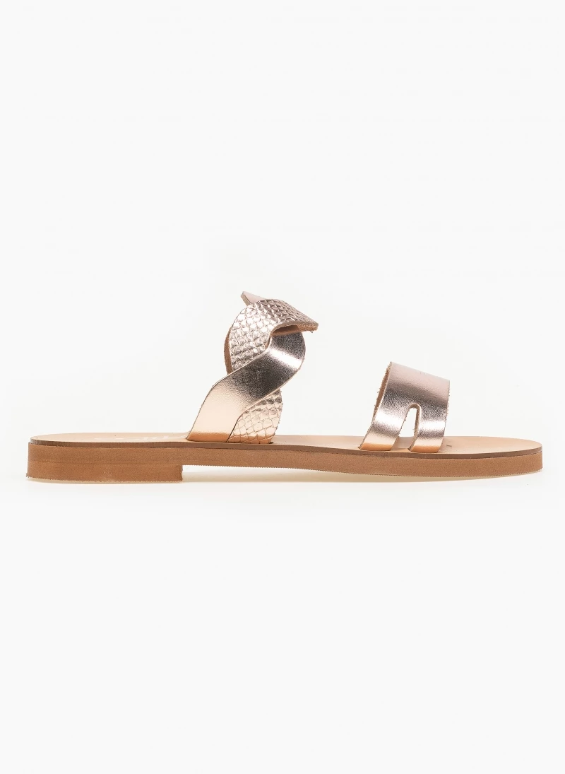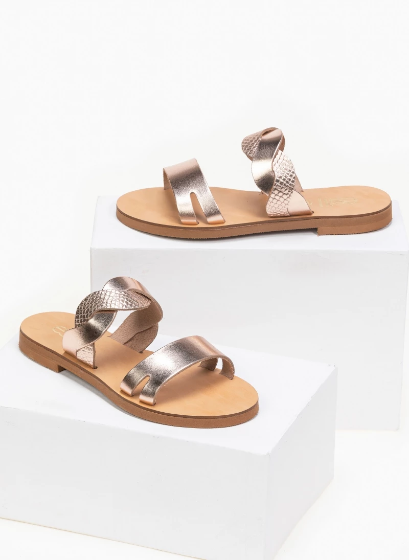 Προϋπολογισμός 🛒 Πολύ καλή προσφορά 👍 Σανδάλια Estil δερμάτινα με Pattern φίδι στα λουράκια – Χαλκός 💯 😍