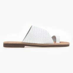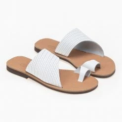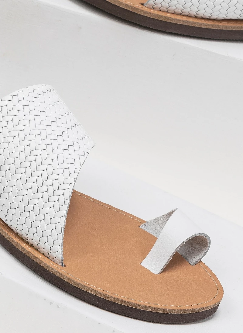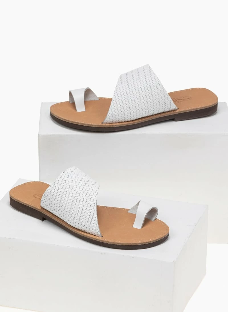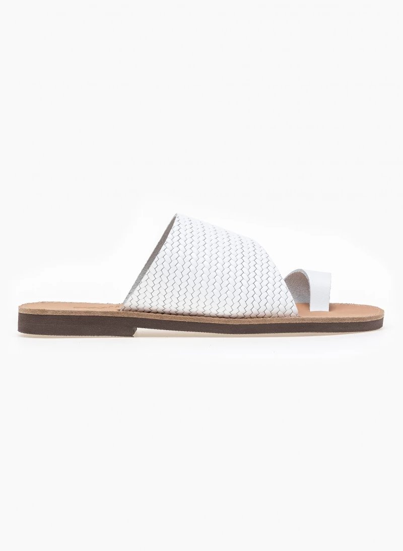 Προώθηση 🔔 Προϋπολογισμός 🎉 Σανδάλια Estil δερμάτινα με Pattern ψάθα – Λευκό ✨ 🎉