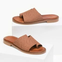 Πολύ καλή προσφορά 🛒 Αγορά 🥰 Σανδάλια Estil δερμάτινα με ανάγλυφο σχέδιο – Χαλκός ⌛ ✨