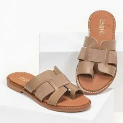 Τοπ 10 ❤️ Πολύ καλή προσφορά 😉 Σανδάλια Estil δερμάτινα με περαστή φάσα και ανοίγματα – Μπεζ 🥰 🎉