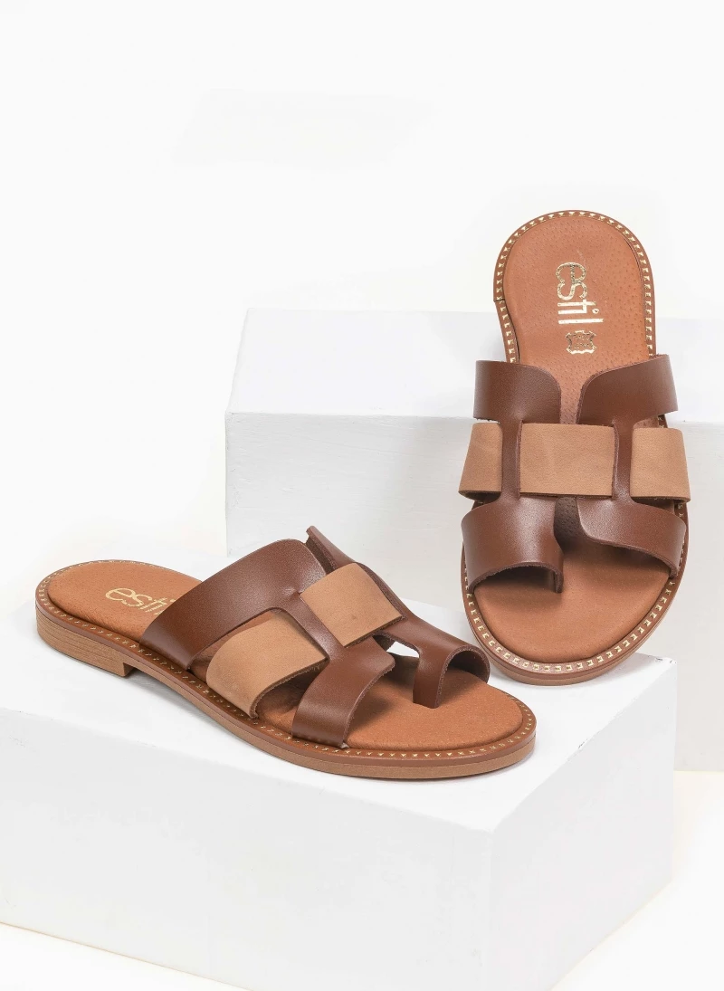 Τοπ 10 💯 Flash Sale ✨ Σανδάλια Estil δερμάτινα με περαστή φάσα και ανοίγματα – Ταμπά ⌛ 🥰