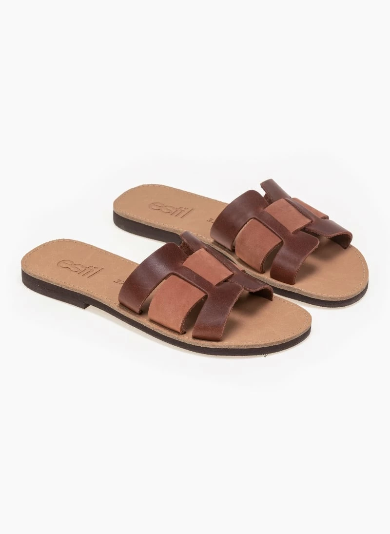 Συμφωνίες ⭐ Καλύτερη πώληση 🎁 Σανδάλια Estil δερμάτινα με περαστή φάσα – Ταμπά ❤️ ✔️
