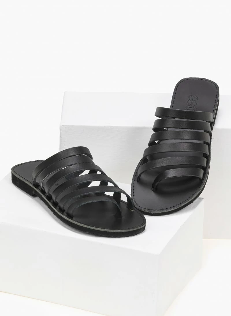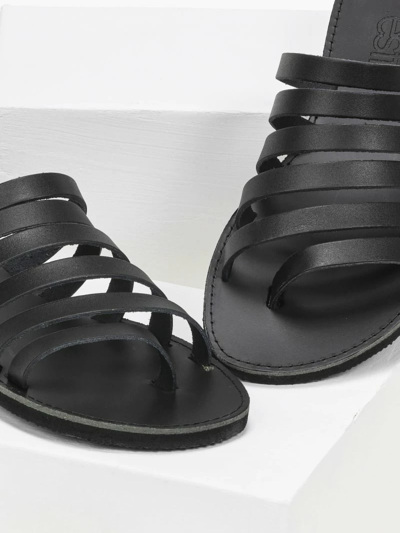 Flash Sale ❤️ Συμφωνίες ⭐ Σανδάλια Estil δερμάτινα με πολλά λουράκια – Μαύρο 👍 🎁