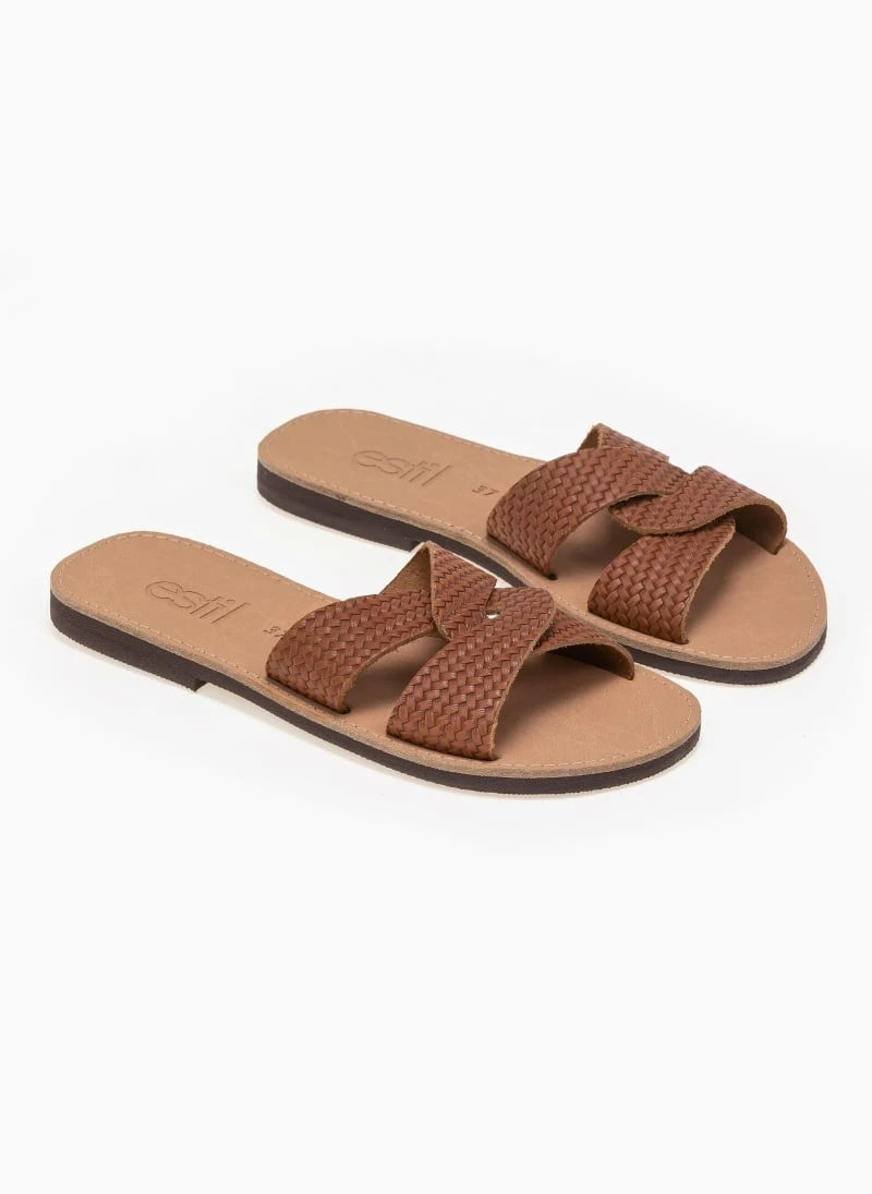 Φτηνός 🤩 ΧΟΝΔΡΙΚΟ ΕΜΠΟΡΙΟ ✔️ Σανδάλια Estil δερμάτινα με σχέδιο ψάθα – Ταμπά ⭐ 💯