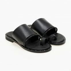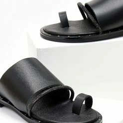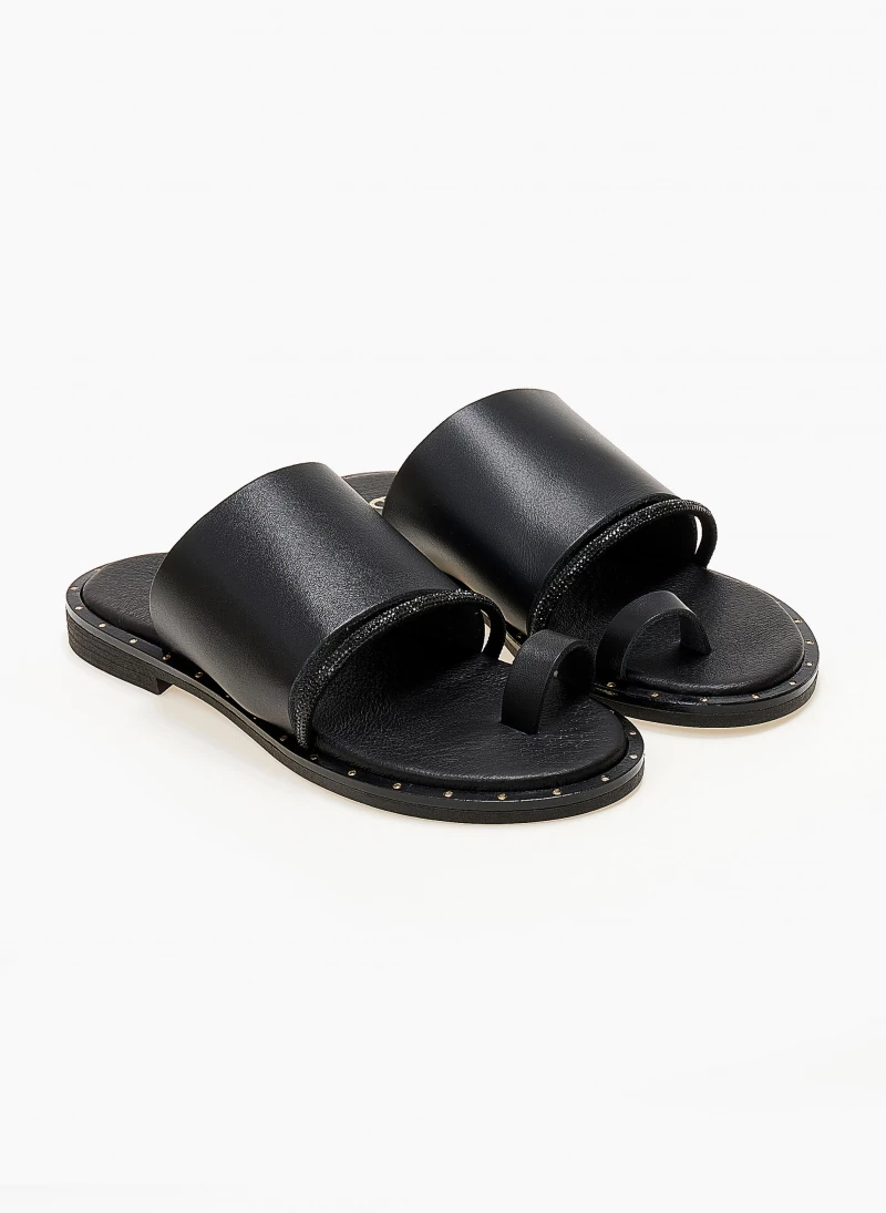 Κουπόνι 🛒 Συμφωνίες ✔️ The Fashion Project Πέδιλα Estil φλατ δερμάτινα με κοτσιδάκι – Μαύρο 😀 ✔️