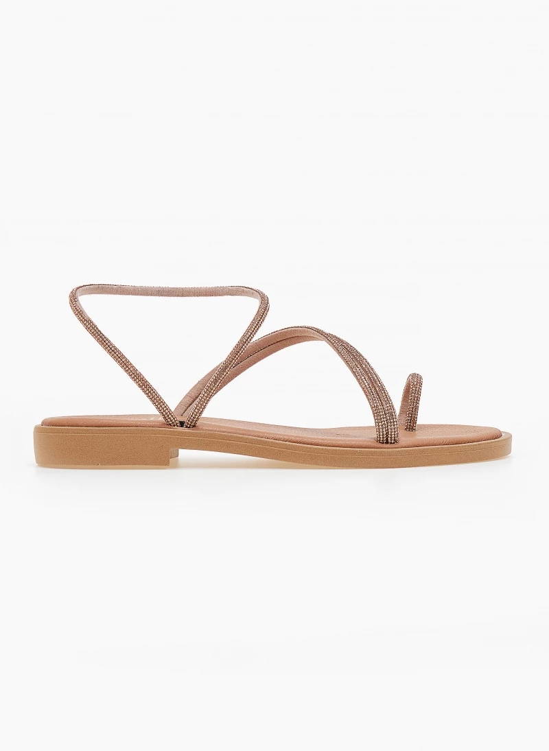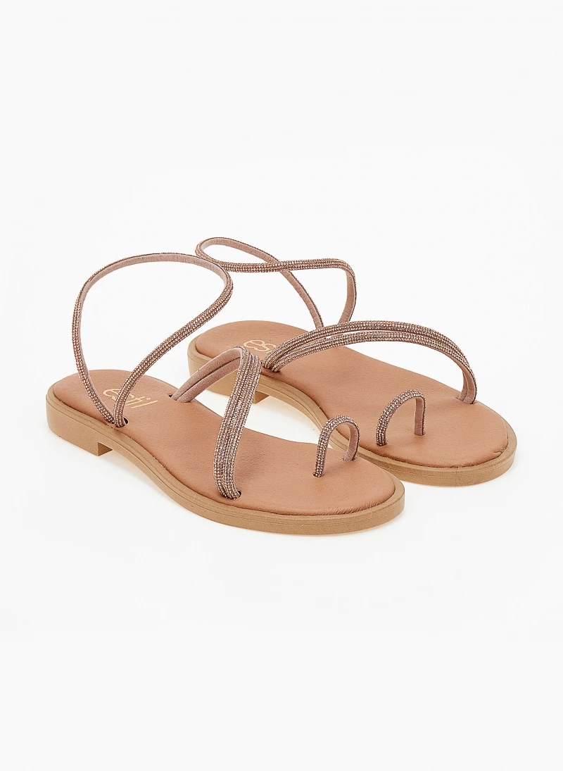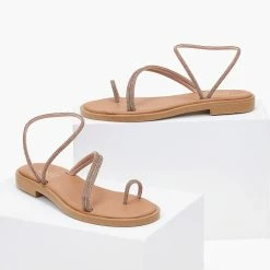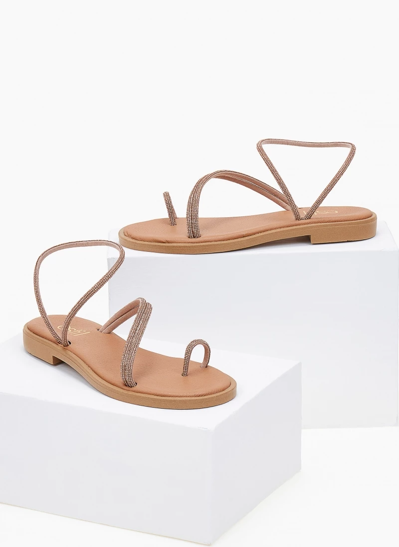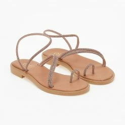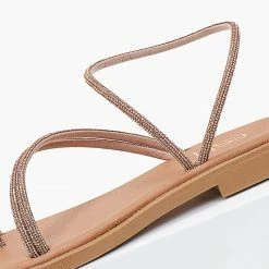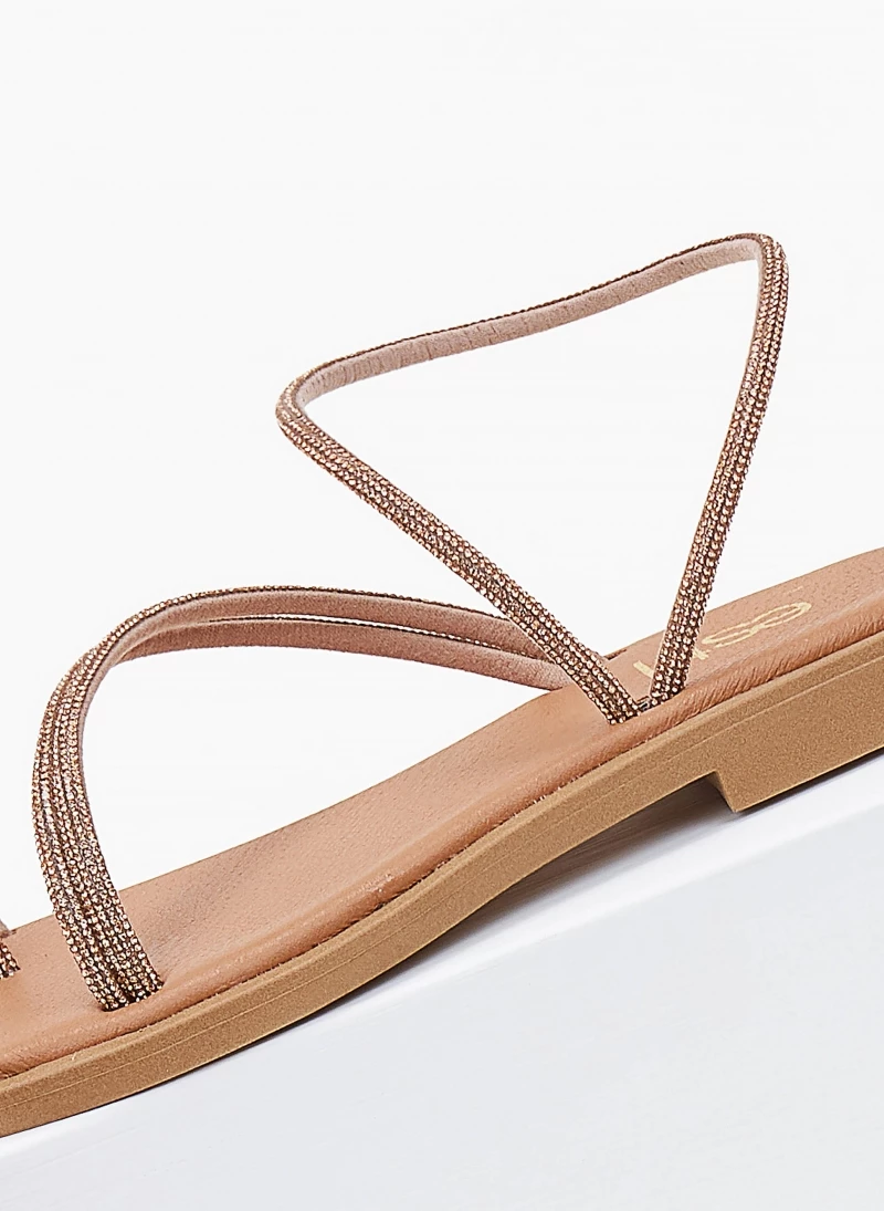 Best Pirce 🥰 Τοπ 10 👍 Σανδάλια Estil δερμάτινα με Strass λουράκια – Χαλκός 🧨 🔥