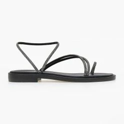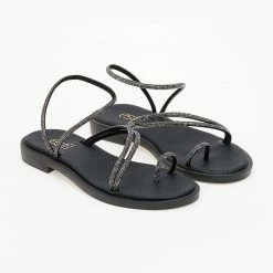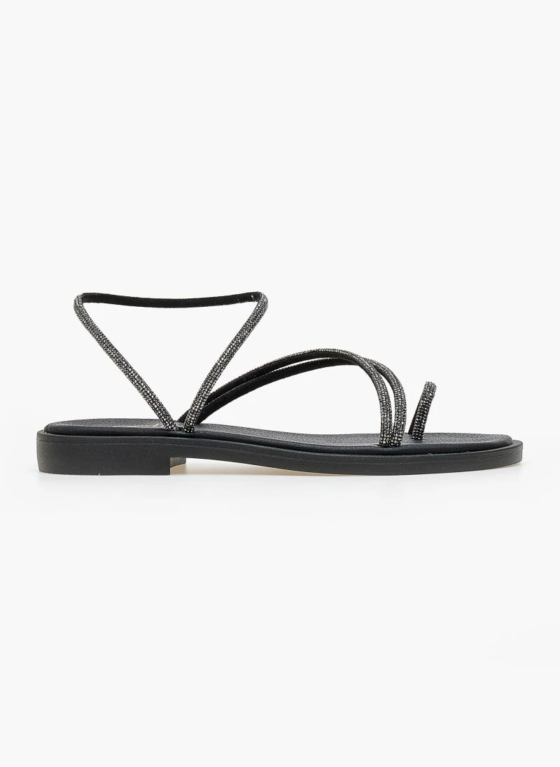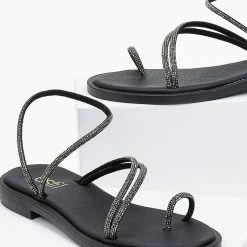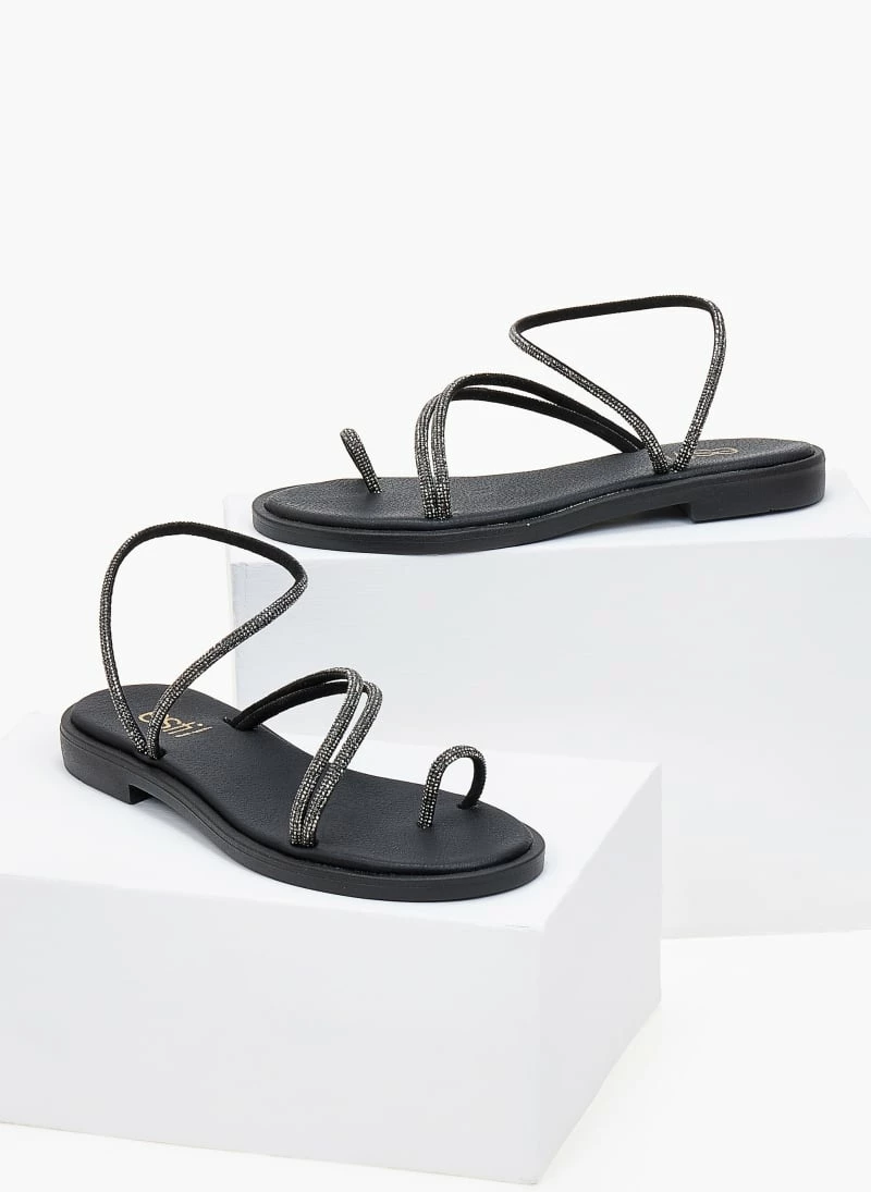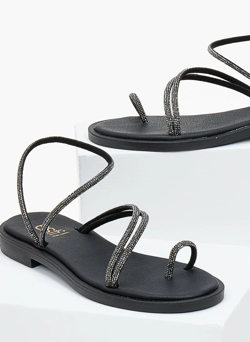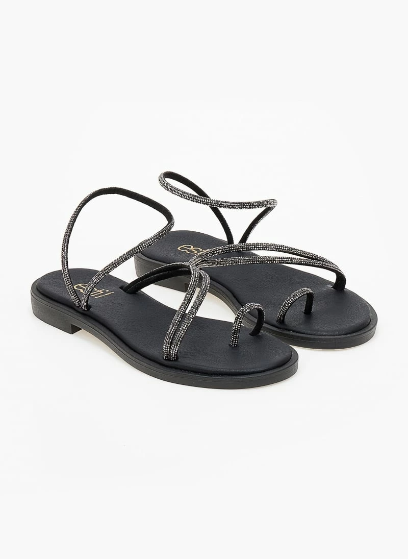Αγορά 🛒 Η καλύτερη συμφωνία ✔️ Σανδάλια Estil δερμάτινα με Strass λουράκια – Μαύρο ⌛ 💯