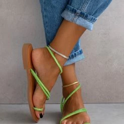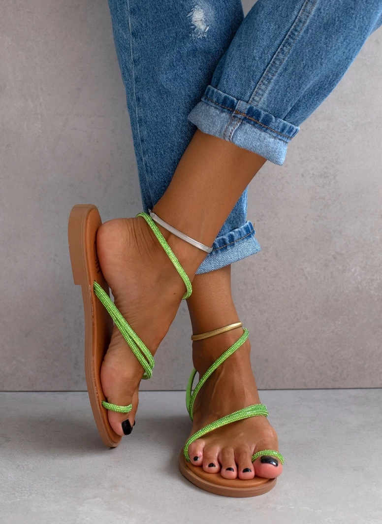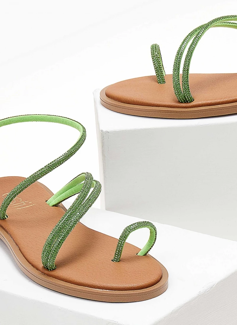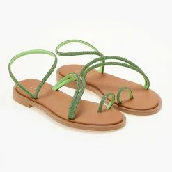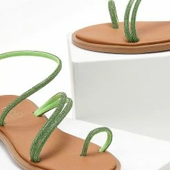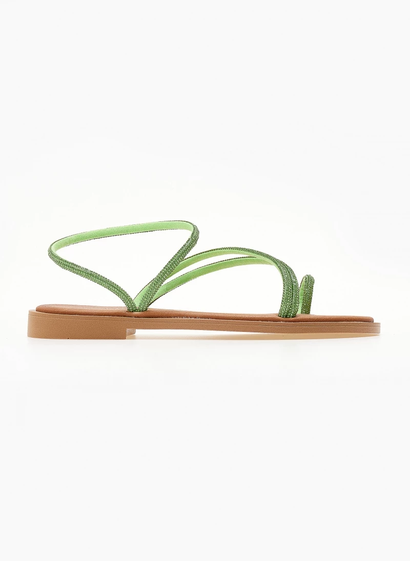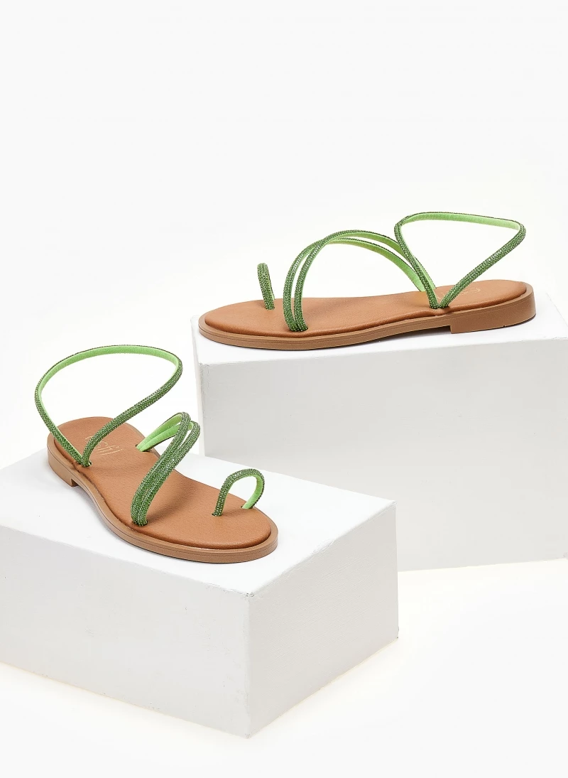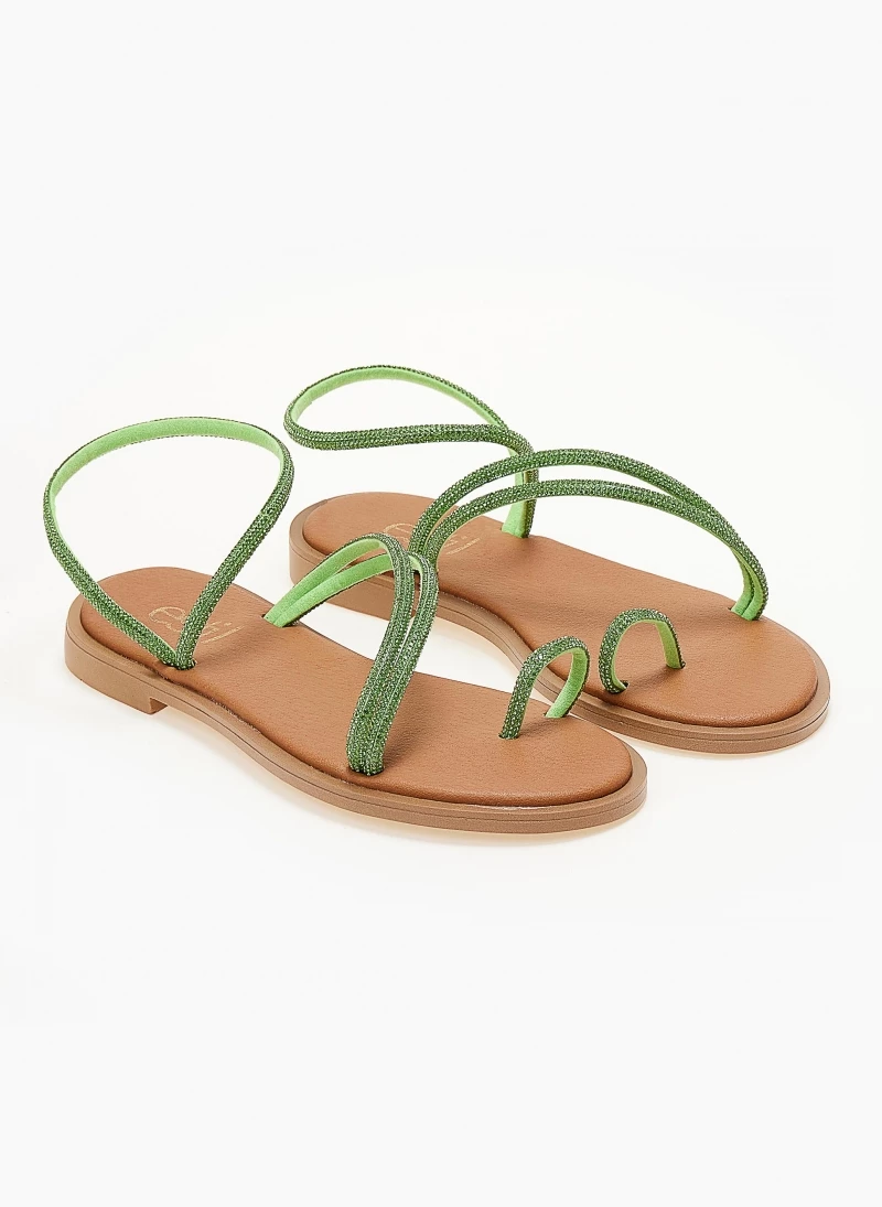 Φτηνός 🔔 Εκπτωση 😀 Σανδάλια Estil δερμάτινα με Strass λουράκια – Πράσινο 🛒 🔔
