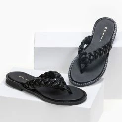 Καλύτερες κριτικές για 😍 Καλύτερη πώληση ⭐ Σανδάλια Estil Flat με κοτσίδες – Μαύρο 🎁 🤩
