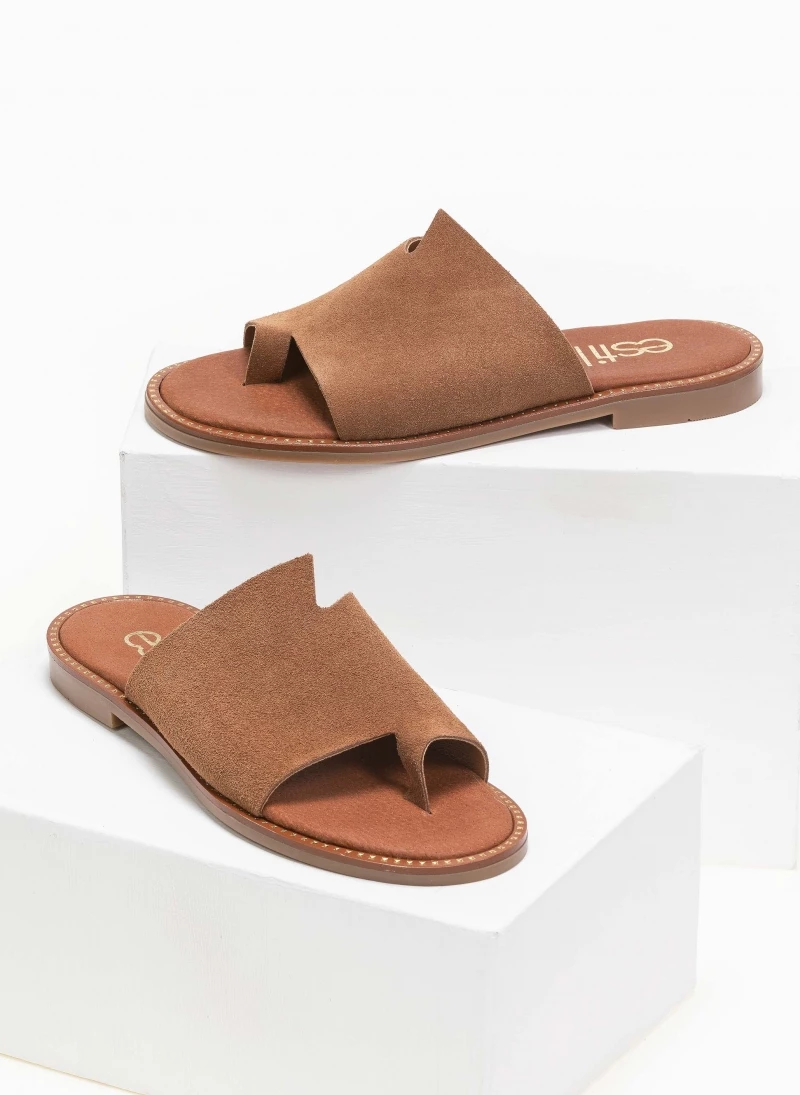 Συμφωνίες ⭐ Καλύτερη πώληση 🎁 Σανδάλια Estil δερμάτινα με περαστή φάσα – Ταμπά ❤️ ✔️