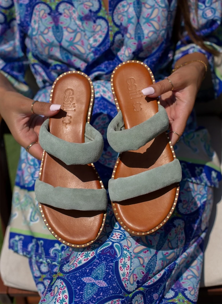 Εξοδος 👍 Πολύ καλή προσφορά 😉 Σανδάλια καστόρινα ESTIL με Pufffed φάσες – Μέντα 🌟 🥰