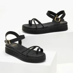 Καλύτερη πώληση 🤩 Best Pirce ❤️ The Fashion Project Flatforms δερμάτινα TFP με Strass χιαστί λουράκια – Μαύρο 🥰 🔔