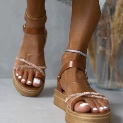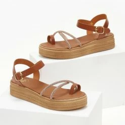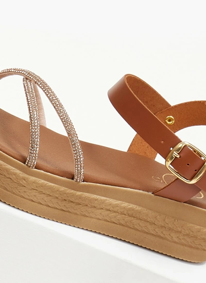 Ολοκαίνουργιο 🧨 ΧΟΝΔΡΙΚΟ ΕΜΠΟΡΙΟ 😀 The Fashion Project Flatforms δερμάτινα TFP με Strass χιαστί λουράκια – Ταμπά ⭐ 😀