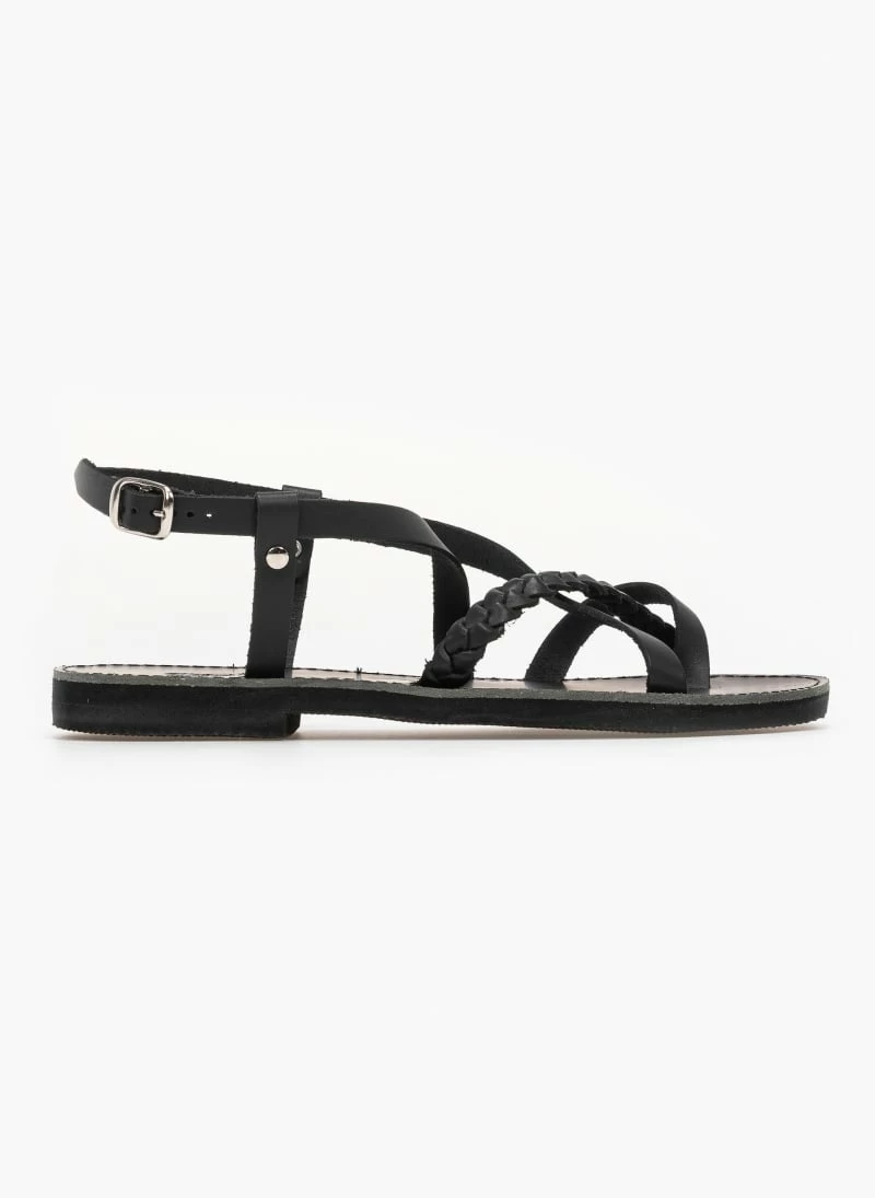 Κουπόνι 🛒 Συμφωνίες ✔️ The Fashion Project Πέδιλα Estil φλατ δερμάτινα με κοτσιδάκι – Μαύρο 😀 ✔️