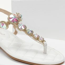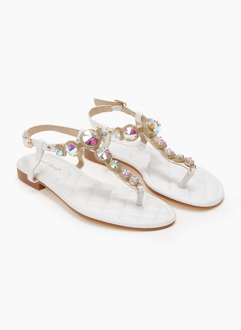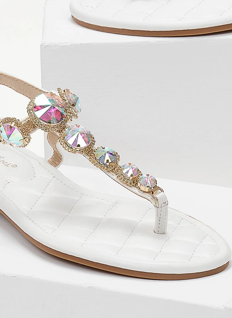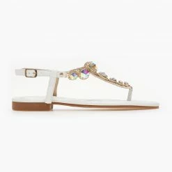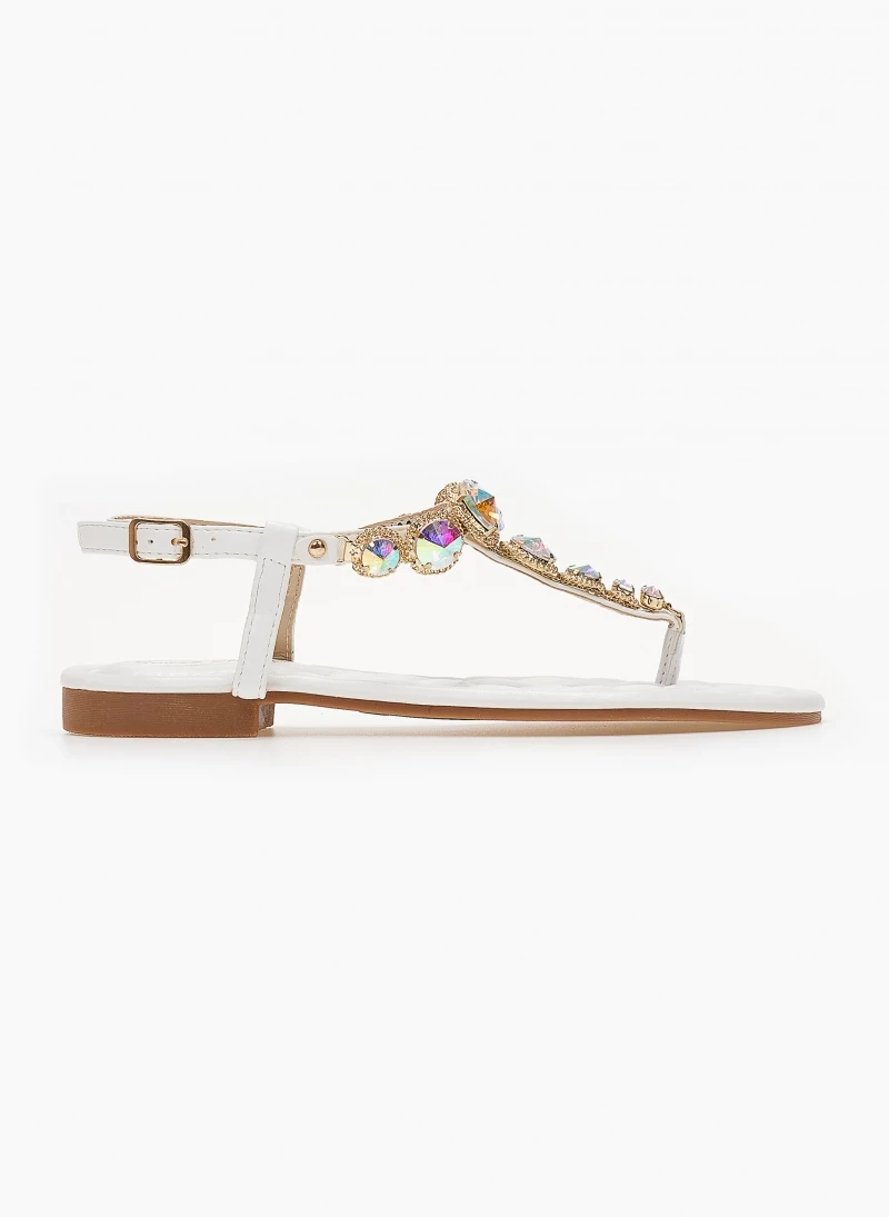 Best Pirce ✔️ Καλύτερη πώληση 🧨 The Fashion Project Πέδιλα φλατ με μεγάλα στρας – Λευκό 🔥 👏