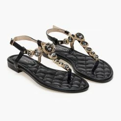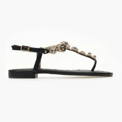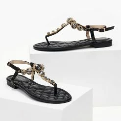 Αγορά ✔️ Προώθηση 😍 The Fashion Project Πέδιλα φλατ με μεγάλα στρας – Μαύρο 🧨 ⌛