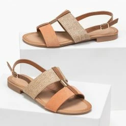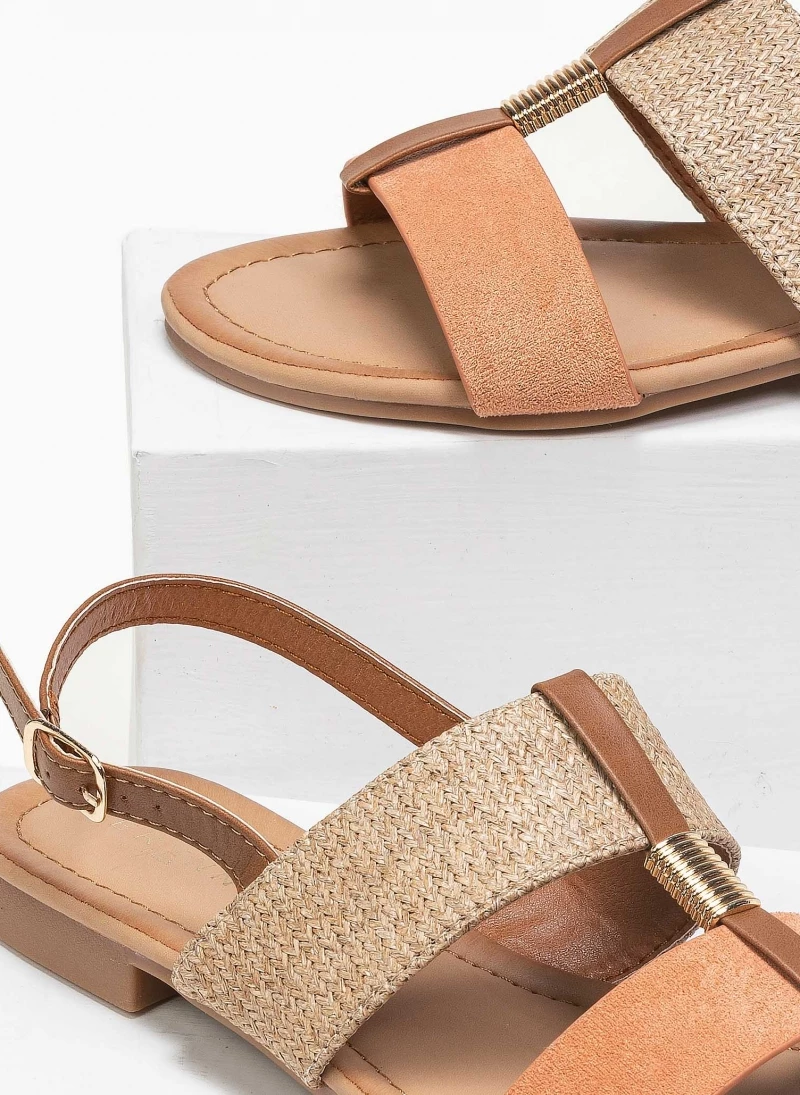 Η καλύτερη συμφωνία 🔔 Αγορά ⭐ Σανδάλια Estil δερμάτινα με ανάγλυφο σχέδιο ψάθα – Ταμπά 💯 🥰