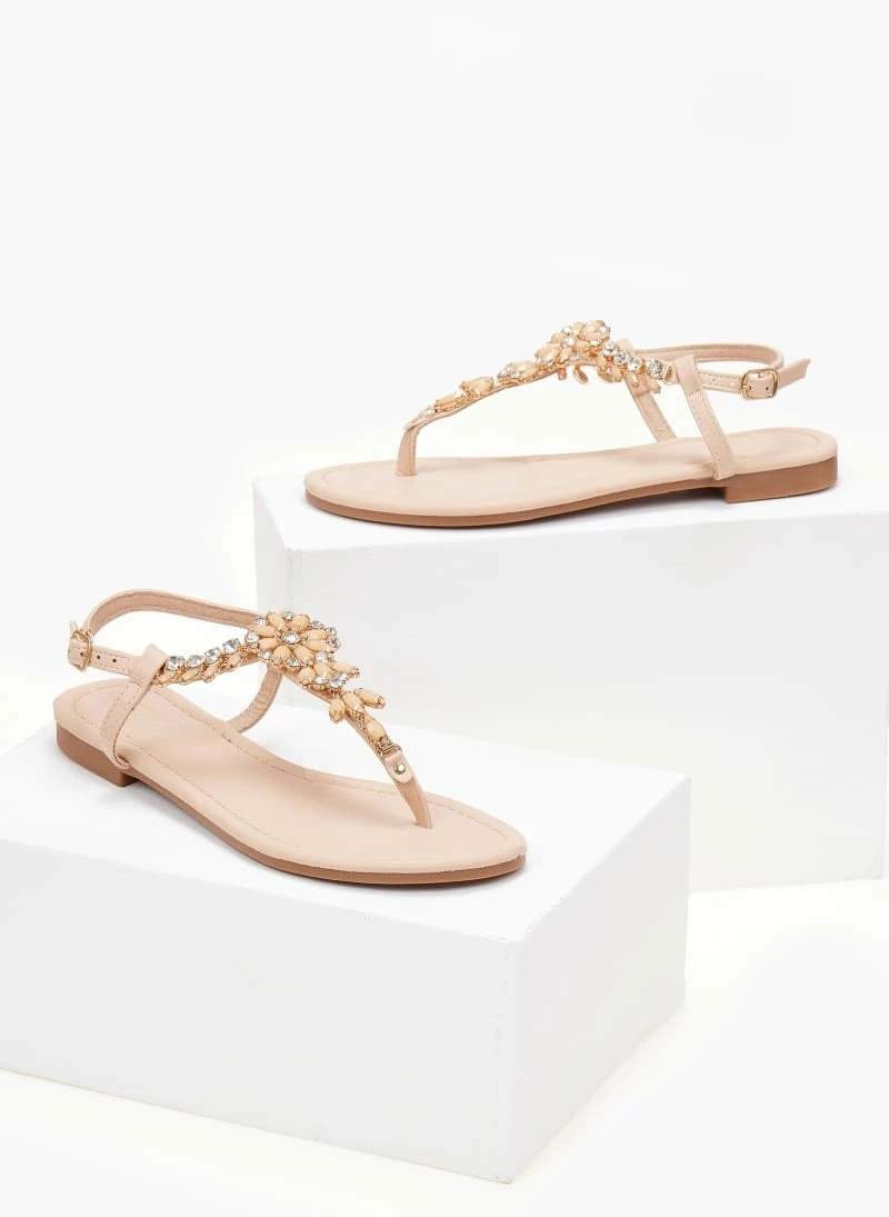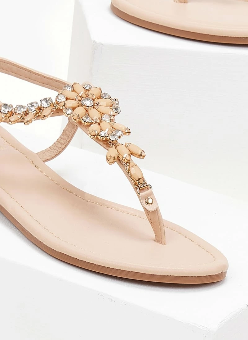 Best Pirce ✔️ ΧΟΝΔΡΙΚΟ ΕΜΠΟΡΙΟ 🔔 The Fashion Project Πέδιλα φλατ με στρας – Μπεζ 🎉 🎉
