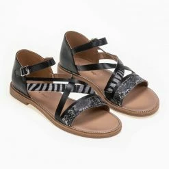 Αγορά 🛒 Το φθηνότερο ⭐ Flatforms δερμάτινα με χιαστί δέσιμο Tfp – Μαύρο 😍 ⭐