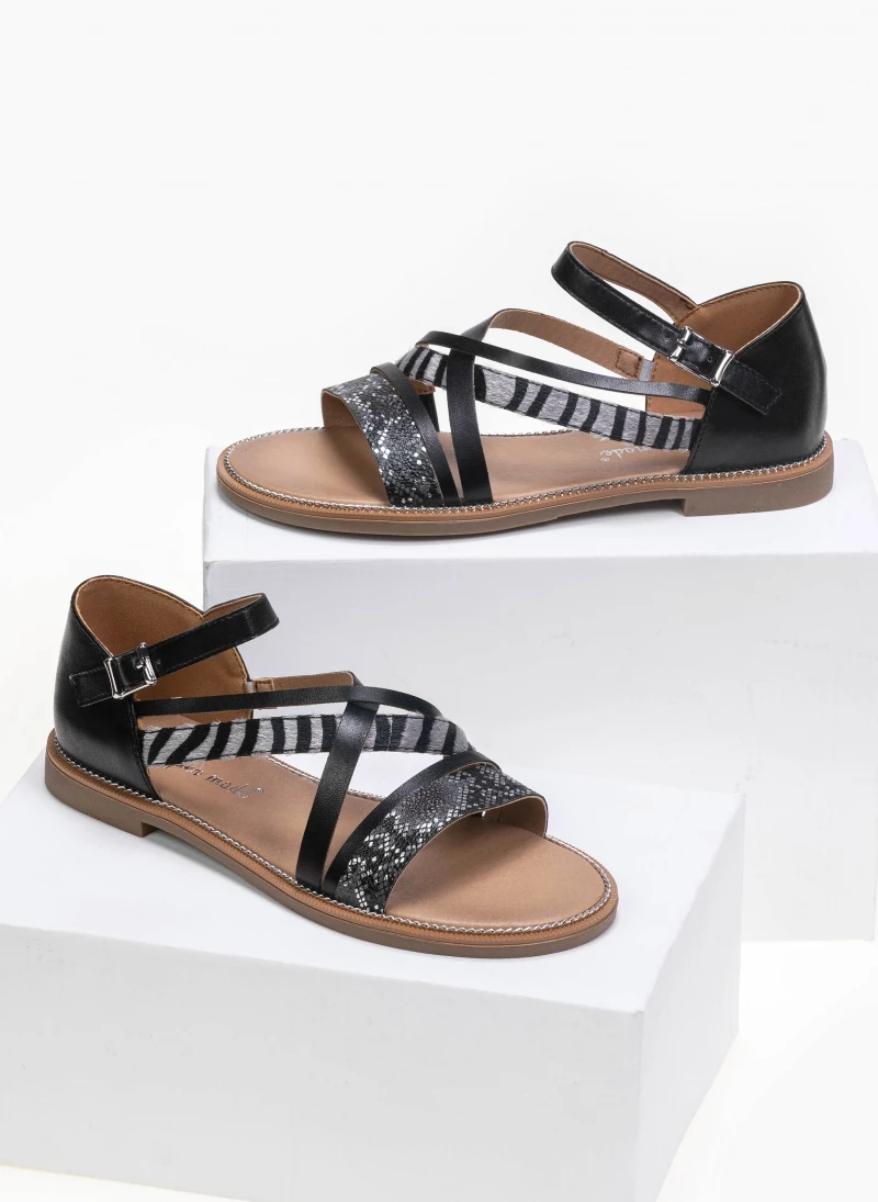 Η καλύτερη συμφωνία 👍 Κουπόνι 👏 The Fashion Project Πέδιλα ίσια με Animal Print λουράκια – Μαύρο 😉 ⭐