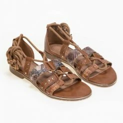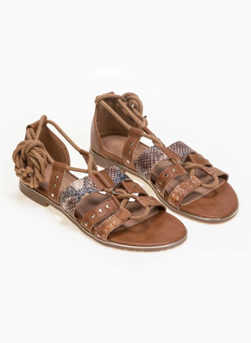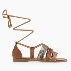 Flash Sale 😉 Το φθηνότερο ❤️ The Fashion Project Πέδιλα Lace Up με Animal Print σχέδιο – Ταμπά ✨ ✔️