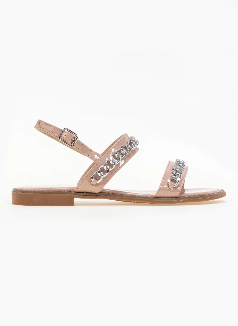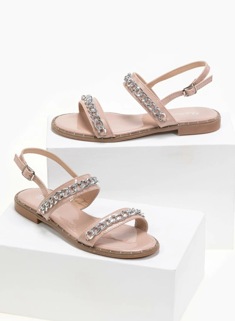 Αγορά ✔️ Τοπ 10 🧨 The Fashion Project Πέδιλα λουστρίνι φλατ με αλυσίδα – Nude 🌟 👏