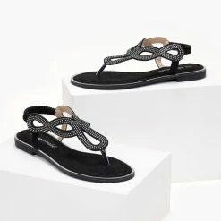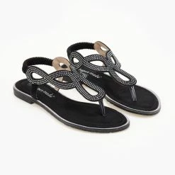 Κουπόνι 🛒 Συμφωνίες ✔️ The Fashion Project Πέδιλα Estil φλατ δερμάτινα με κοτσιδάκι – Μαύρο 😀 ✔️